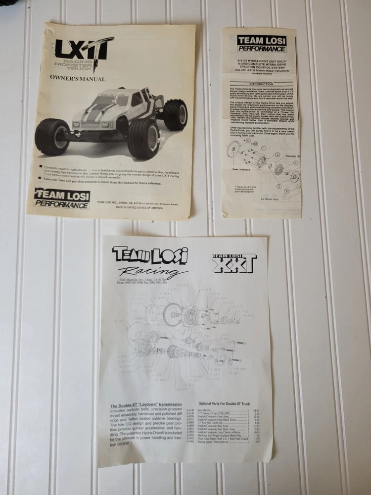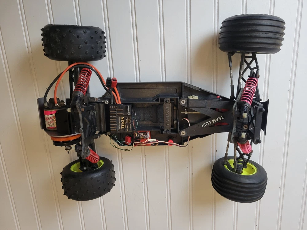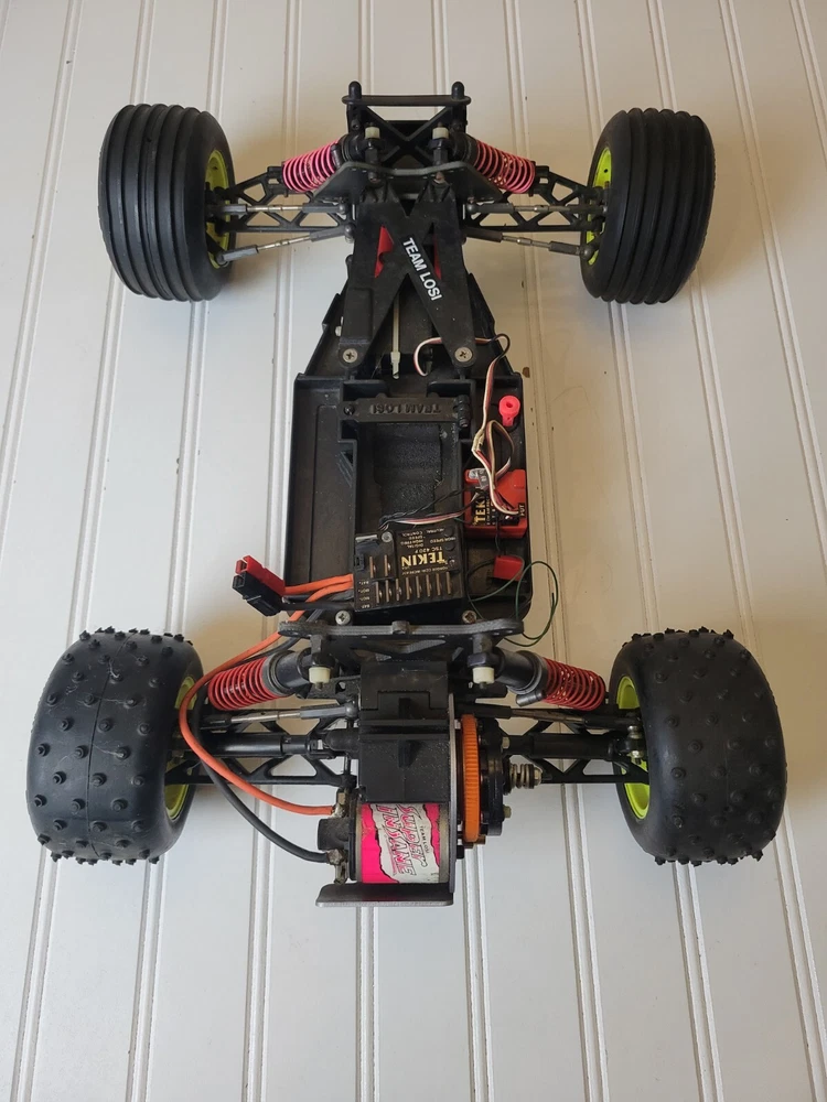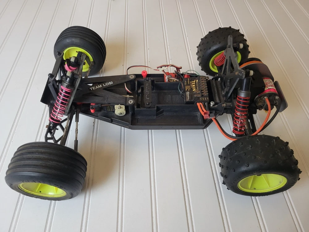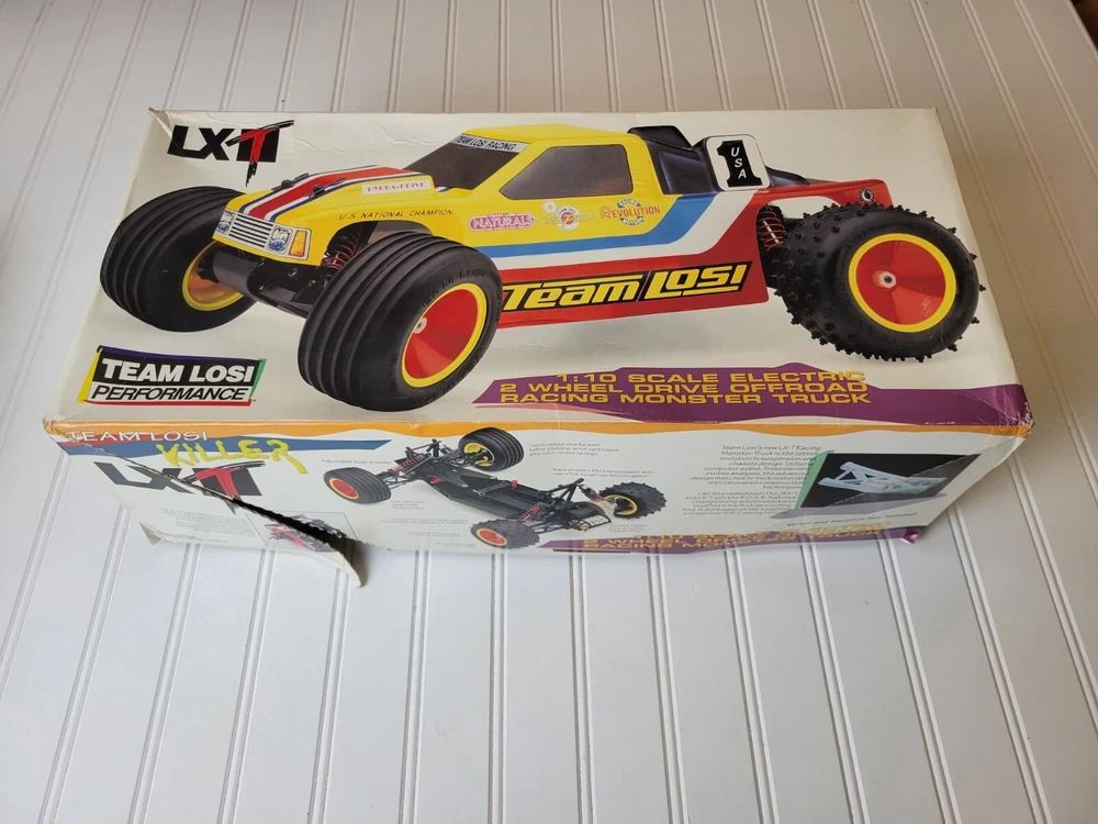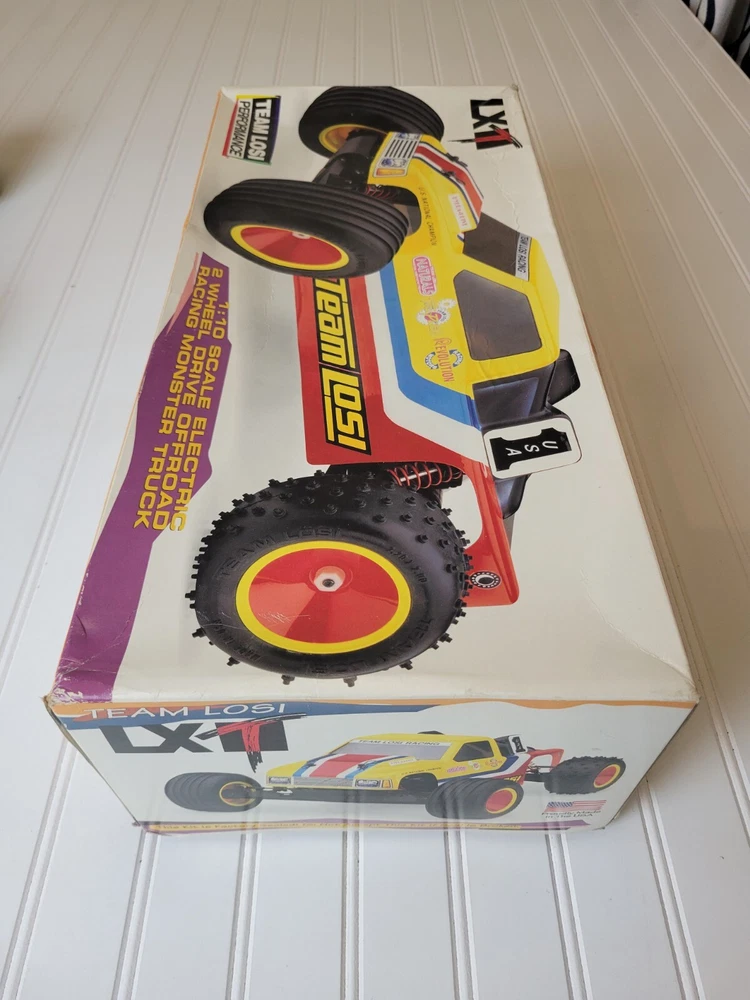 This rare vintage Losi LXT RC Stadium Truck is a must-have for any vintage RC collector. With its 1:10 scale and intricate details, this truck is sure to impress. Includes Box, instruction manual and everything shown pictures. All electronics are included, but I do not know their functionality. ESC and receiver are Tekin. Also includes a Futaba Magnum Junior controller that does power on. Batteries are not included. There are minor scratches on the bottom of the chassis. There are no visual cracks or breaks in any of the components on the truck. Don't miss out on the chance to own this vintage RC truck. Free shipping vis UPS within lower 48.