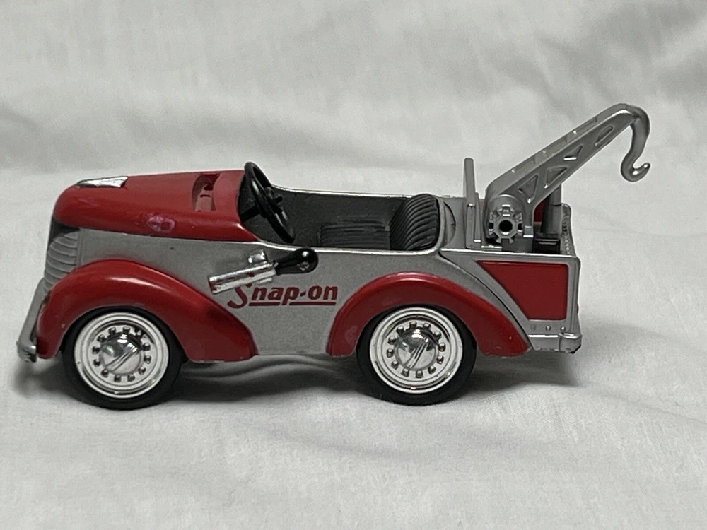Introducing the unique and highly sought-after Snap-on Petite Pedal Car Series 1/12 Scale 1940's Tow Truck. This rare collectible item is a must-have for any toy enthusiast's collection. The petite tow truck is beautifully crafted and comes with a numbered tag that makes it a truly one-of-a-kind item. Measuring 4 inches in size, this toy is perfect for display and play. The Snap-on brand is known for its quality tools and this miniature tow truck is no exception. It is made in China and comes as a single item with no custom bundle. Please note that this item does not come with a warranty.