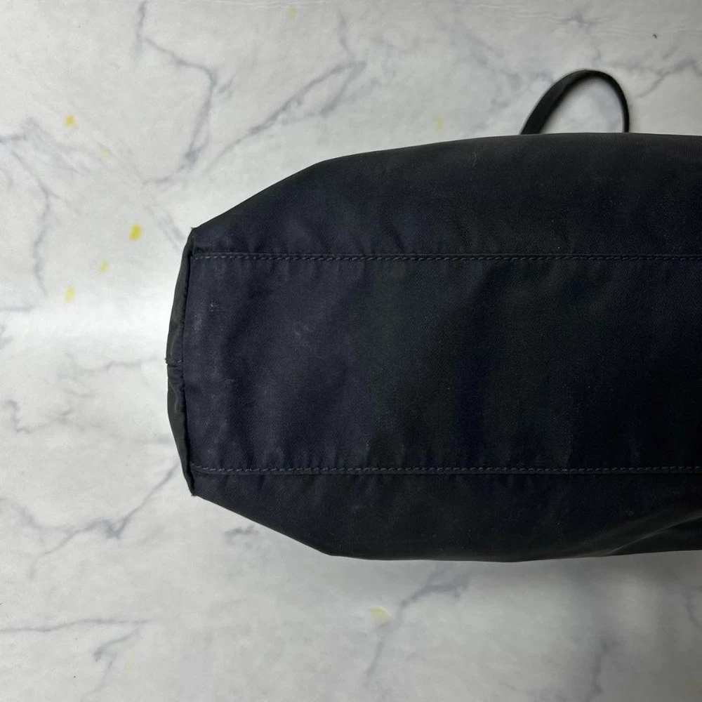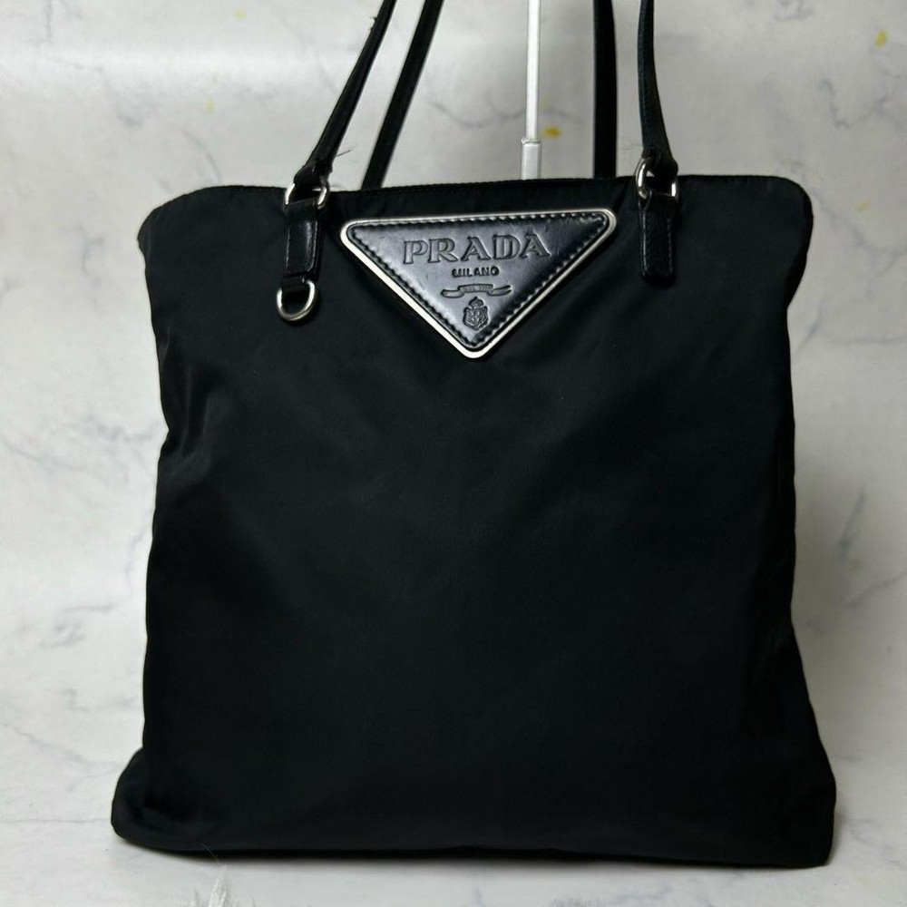 Absolutely love this Prada tote! The large triangle logo gives it such a sleek, luxurious look, and the black color is so versatile. Even though it's pre-owned, the quality is amazing—just minor signs of wear that add character. Shipping from Japan was smooth, and the bag arrived exactly as described. Perfect for everyday use or a stylish statement piece. Highly recommend!
