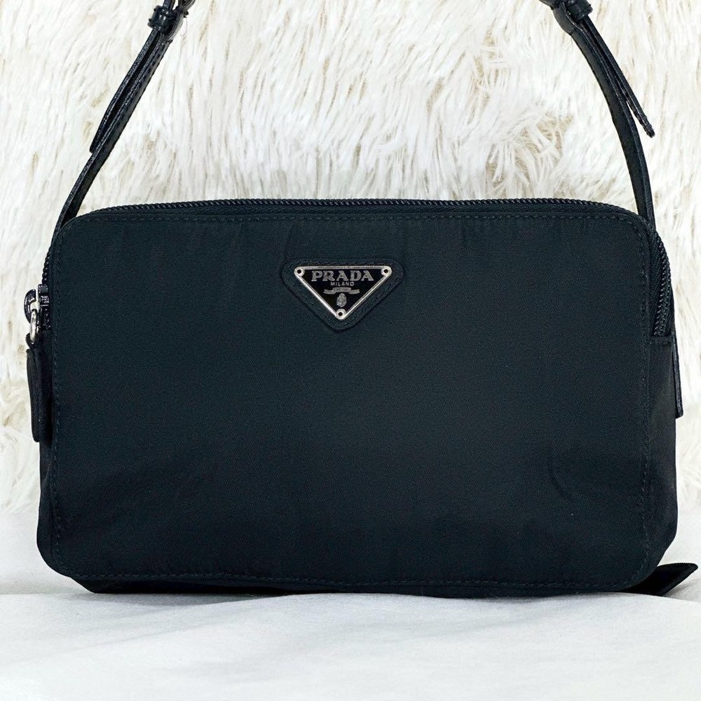 Rare Prada Acousry Pouch One Shoulder G Card 1254 Key Features - **Product Description:** PRADA double-zip accessory pouch, a rare 1990s model designed for shoulder use. Ideal as a card holder, made of nylon with a black color. Features a triangular logo and comes with a guarantee card. - **Features:** Black nylon material, size approximately 12cm x 19cm x 8cm, handle length 37-45cm. Includes a guarantee card. - **Condition:** Excellent condition (AB), with minor leather wrinkles and no noticeable damage. - **Item Specifics:** Brand: PRADA Type: Accessory Pouch Model: 1990s Double-Zip Model Material: Nylon Color: Black Size: 12cm (H) x 19cm (W) x 8cm (D) Handle Length: 37-45cm Condition: AB Includes: Guarantee Card Specifications Brand Prada Country Japan Product Description Description Thank you for your interest. This item is not new, but a used item that was given away. Please check the photos for the condition of the item. Please understand that the condition of the item is subjective and the standard of evaluation and feeling may vary from person to person, so please be aware that this is a used item before bidding. Please check the photos for the condition of the item, such as scratches and stains. To prevent problems, please feel free to contact us if you have any questions about the size or other details of the item. We will be happy to adjust the price. We will do our best to ship your order as soon as possible. We will do our best to ship as soon as possible, but there may be delays during the busy harvest season. Remarks All the products we sell are obtained and sold by pawn shops that are authorized brands, so all the products we handle have been authenticated to meet our strict standards for authenticity, so please buy with confidence. Payment Supports managed payments Please pay within 5 days after auction is finished. About Us We are located in Japan. It's our pleasure to make you happy by proposing our recommend item. If you have any questions or request about items, please feel free to ask us. International Buyers - Please Note: -Importduties, taxes, and charges are not included in the item price or shipping charges. These charges are the buyer's responsibility. -Please check with your country's customs office to determine what these additional costs will be prior to bidding/buying. -These charges are normally collected by the delivering freight (shipping) company or when you pick the item up - do not confuse them for additional shipping charges. -We do not mark merchandise values below value or mark items as - gifts - The US and International government regulations prohibit such behavior. Thank you for your understanding