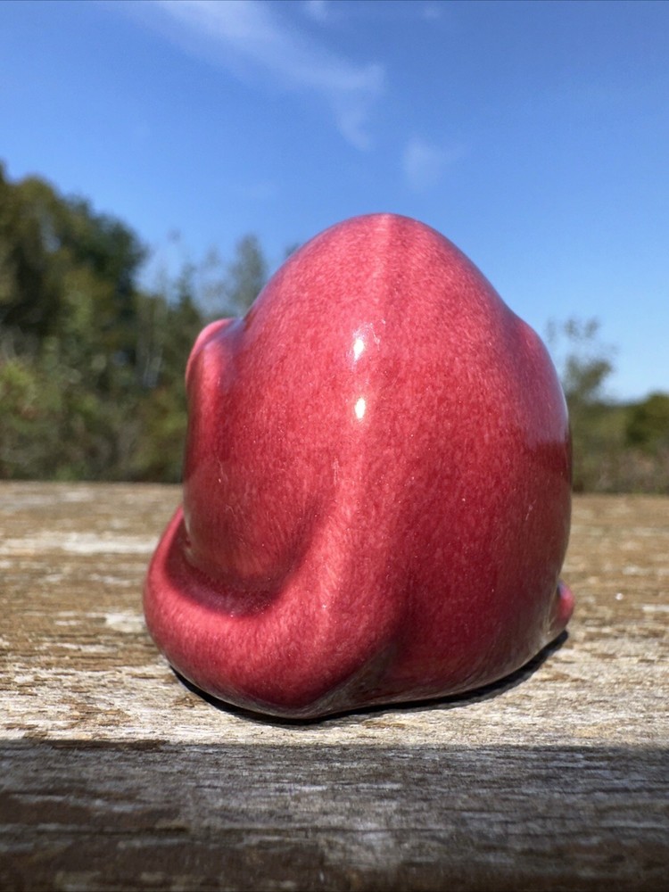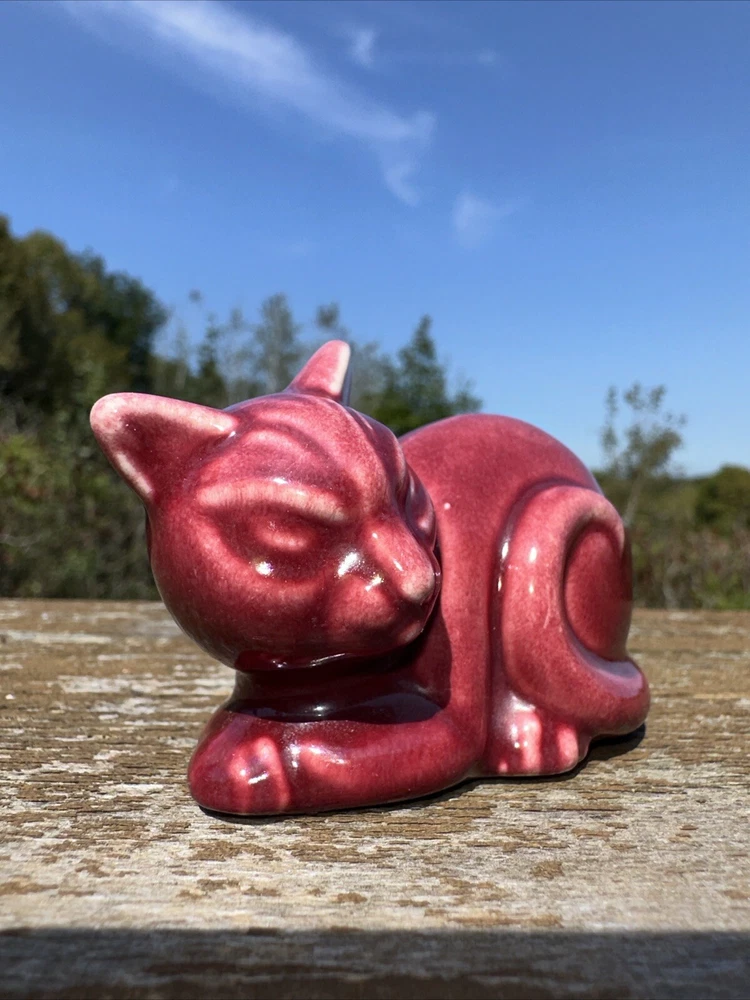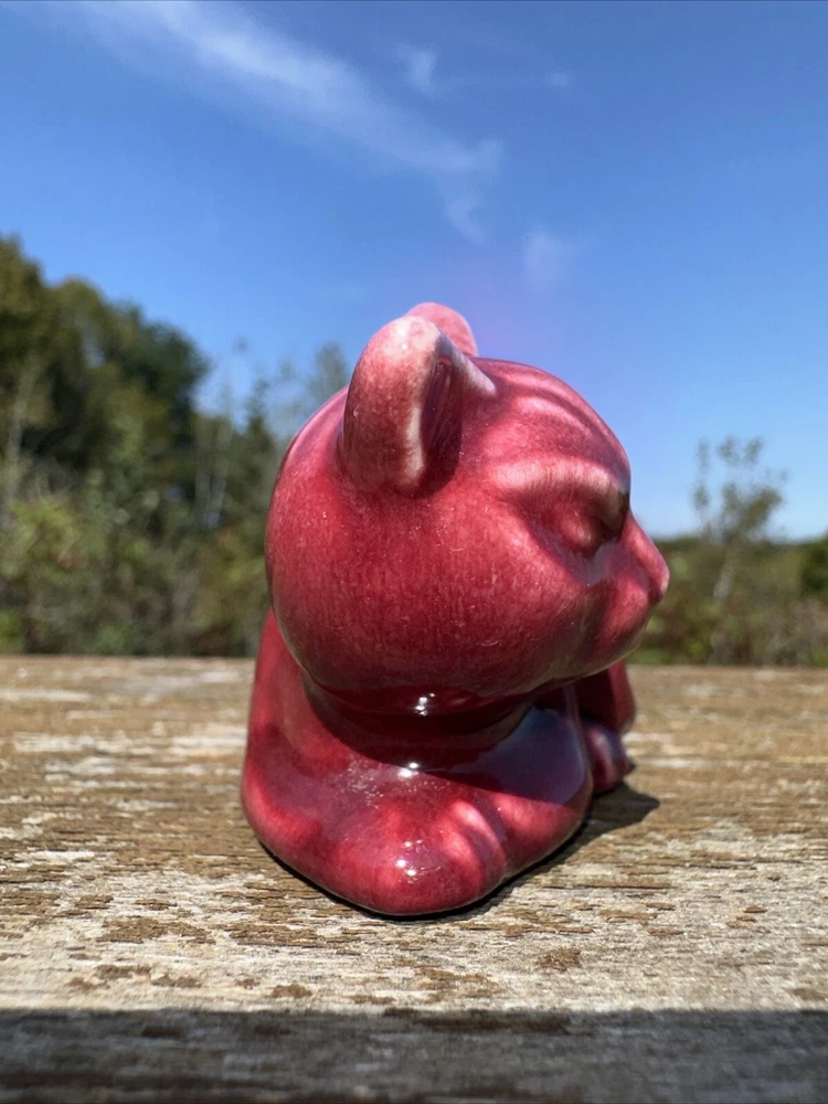 This beautiful figurine is a rare find for any collector. Made by Homer Laughlin, it features a charming cat design with a glossy red finish. The piece is made of high-quality ceramic and has a vintage feel to it. The Harlequin Animal Cat Maroon Rare Red Fiestaware Vintage figurine is a perfect addition to any decorative pottery collection. It is an original piece and was handmade in the United States. This art pottery piece is part of the Fiesta product line and is sure to catch the eye of any cat lover.