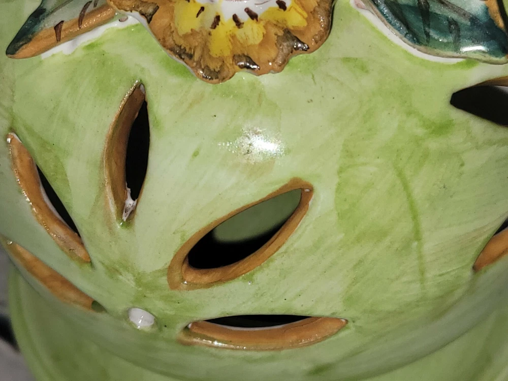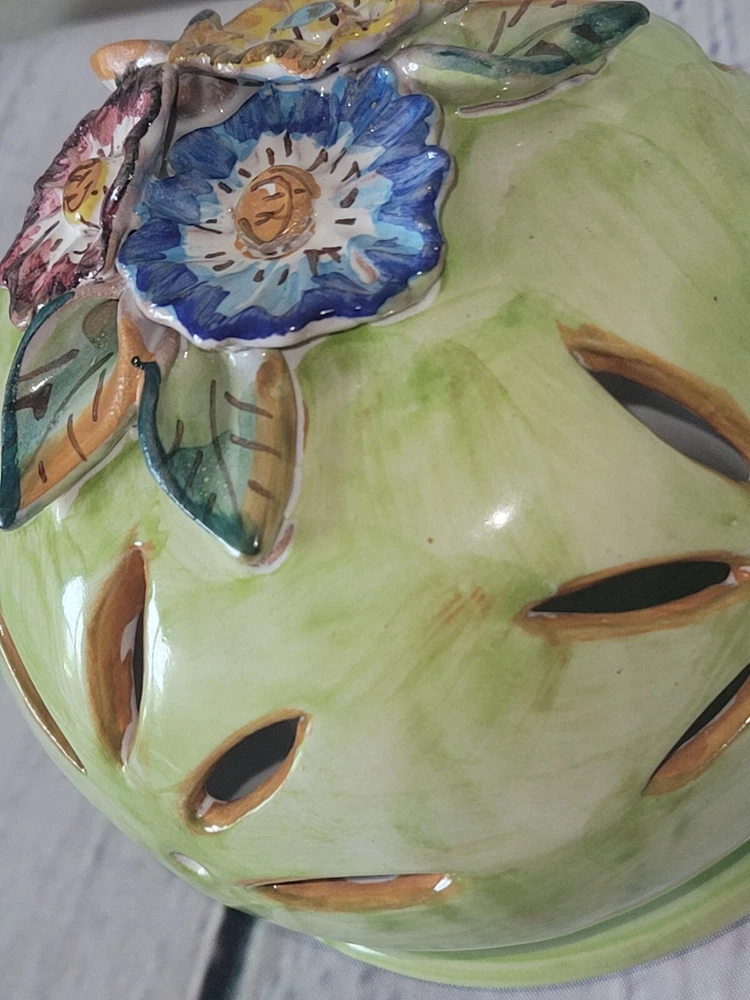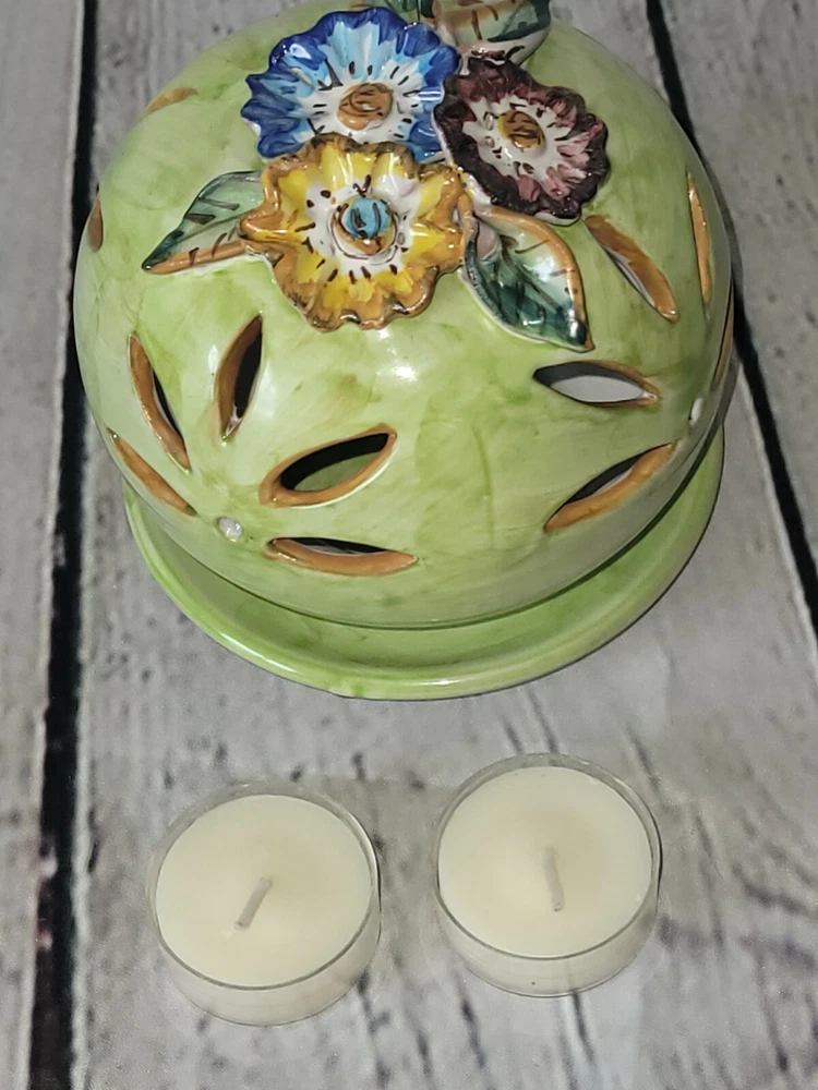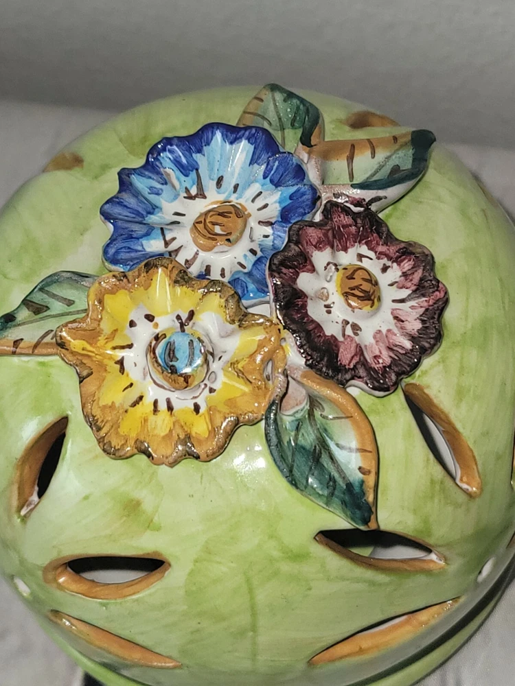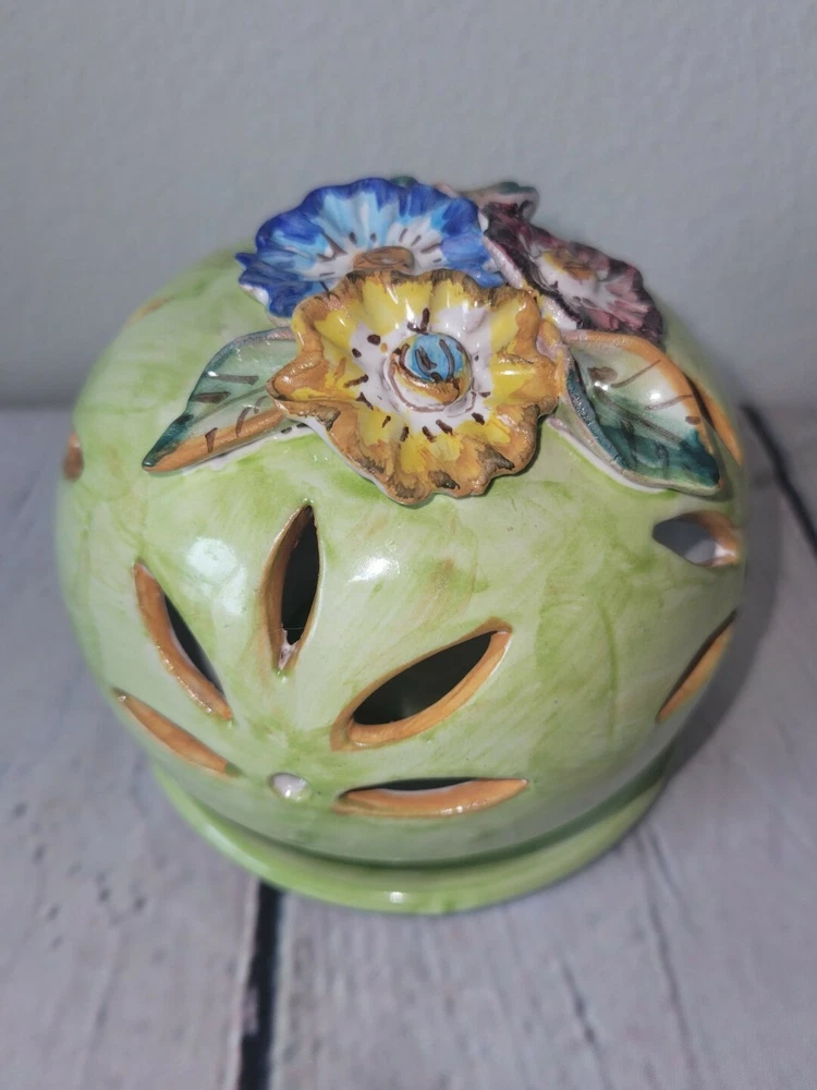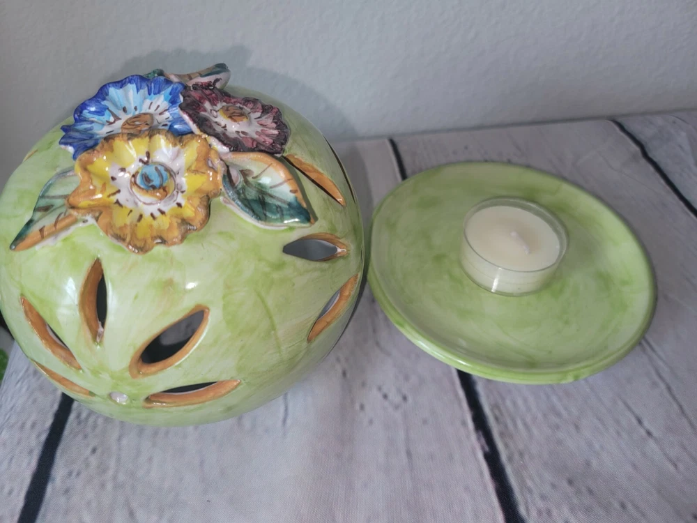 Origin: italy Theme: Flowers Country/Region of Manufacture: Italy Color: Green Production Style: Majolica Type: Candle Holder Model: Pottery shade Production Technique: Pottery Brand: Solimene Suitable For: Tea Light