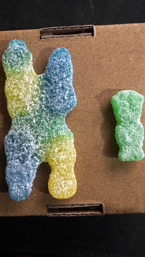 Unique Sour Patch Kid Candy with Rare Mold Error - Blue & Yellow with Green Center! For sale is an extraordinary Sour Patch Kid candy featuring a fascinating mold error. This one-of-a-kind piece showcases a striking combination of blue and yellow colors, blending into a distinctive green center that is NOT the standard green Sour Patch Kid found in regular bags. This is a true collector's item for candy enthusiasts, error collectors, or anyone looking for something truly unique! Condition : Brand new, untouched, and carefully preserved to maintain its unique appearance. Colors : Blue and yellow exterior with a rare green center caused by a manufacturing mold error. Authenticity : 100% genuine Sour Patch Kid candy with a verifiable production anomaly. Perfect For : Collectors of rare candy errors, novelty items, or quirky memorabilia. This is a once-in-a-lifetime find, as mold errors like this are exceptionally rare in mass-produced candies. Don’t miss your chance to own a piece of candy history! Bid now or contact me with any questions. Note : Item will be securely packaged to preserve its condition during shipping. No returns due to the unique nature of this item.