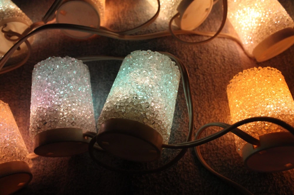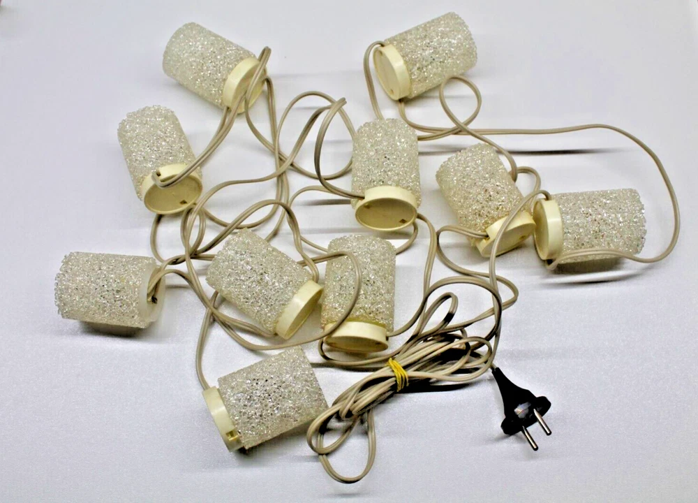 Embrace the festive spirit with these rare Soviet Christmas garlands, aptly named "Masquerade," Operates on 220 volts. 10 shades measuring 7cm long and 5cm in diameter which were crafted to adorn the legendary USSR Christmas tree. Each garland captures the essence of the season with its classic design, evoking the celebratory traditions of a bygone era. Ideal for collectors and enthusiasts of historical holiday decorations, these garlands serve as a unique piece of Soviet-era memorabilia. They offer a touch of nostalgia and are perfect for adding a retro flair to your holiday decor or as a standout display piece during the most wonderful time of the year.