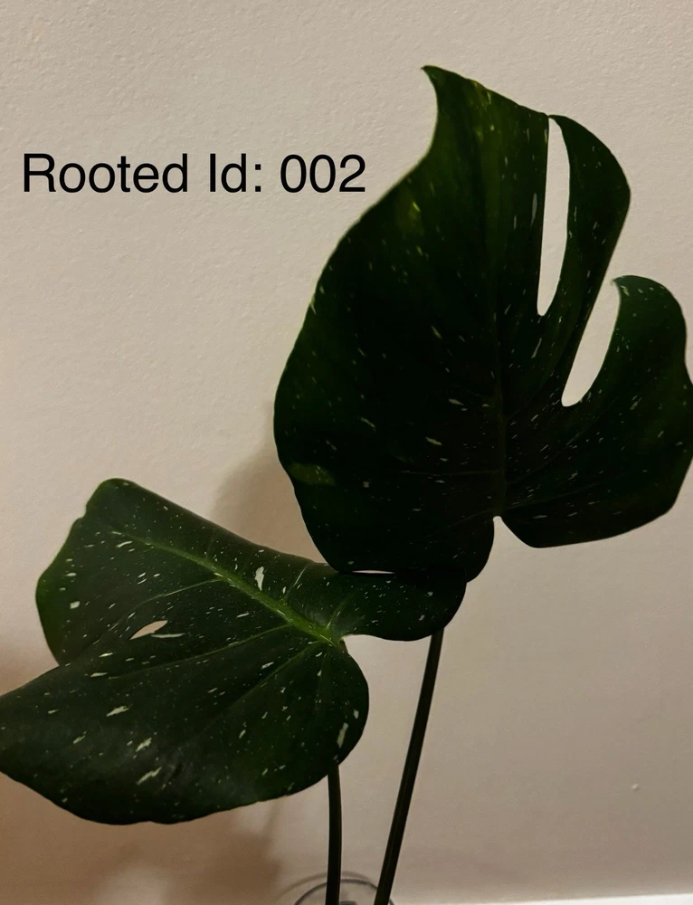 Rare Thai Constellation Monstera – Variegated Monstera Albo Own a showstopper: a genuine Thai Constellation Monstera with creamy white variegation on sturdy, glossy leaves. This highly sought-after variegated aroid is perfect for collectors and interior spaces that need a focal plant. Available Options Rooted Cutting – established roots, ready to pot Unrooted Cutting with Node – ideal for propagation Details & Care Botanical Name: Monstera deliciosa 'Thai Constellation' Light: Bright, indirect light—avoid hot direct sun that can scorch variegation Water: Water when the top 1–2 inches of soil are dry; do not let sit in water Soil: Well-draining mix with good aeration (add perlite or orchid bark) Humidity: Prefers moderate to high humidity; benefits from occasional misting What You Will Receive One Thai Constellation Monstera in the selected variant Care card with planting and aftercare tips Secure packaging to ensure safe transit Packaging & Shipping Plants are carefully packed using protective wrapping and a sturdy box. Items are shipped promptly to minimize transit time. Please choose the shipping option that suits your location and season. We do not ship to PO boxes for live plants. Important Notes Variegation patterns are unique — your plant will be similar but not identical to photos. This plant is toxic if ingested; keep out of reach of pets and children. Live plant condition guarantee: packages damaged in transit should be reported within 2 hours with photos. Questions? Message us before purchase for size/variant availability or photo requests. Add this rare Thai Constellation to your collection today — limited stock available.