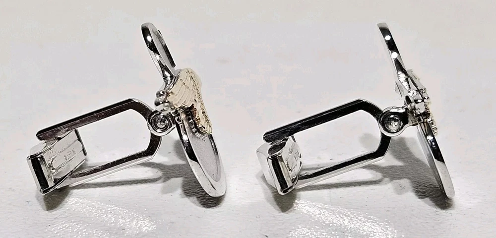 Up for sale is a Rare Pair of Tiffany & Co. Sikorsky Aircraft/Lockheed Martin Executive Sterling Silver and 14K Yellow Gold Cufflinks. Measures approximately 1" Wide X 7/8" High. Total weight is 11.4 Grams. Cufflinks come in original Tiffany & Co. gift box. Cufflinks are in excellent condition. Please feel free to ask questions. Thank you. From a smoke and pet free environment E-345