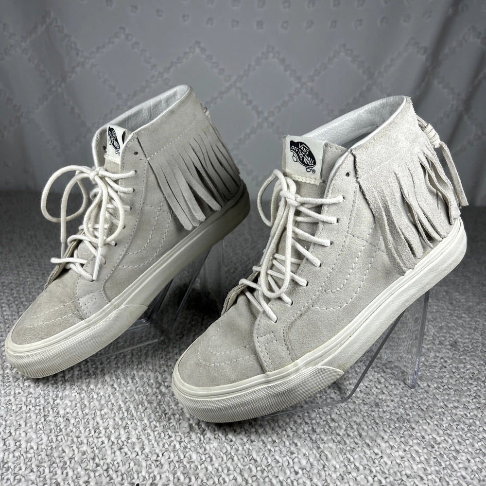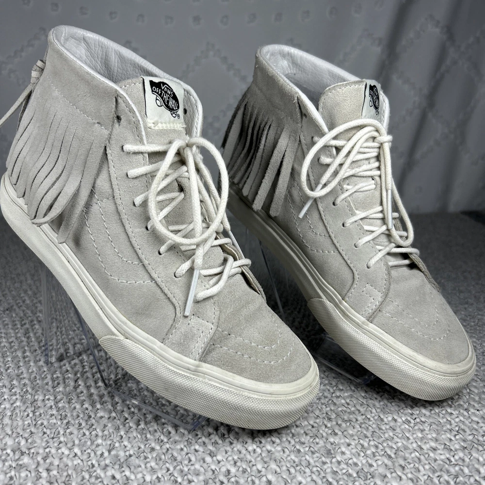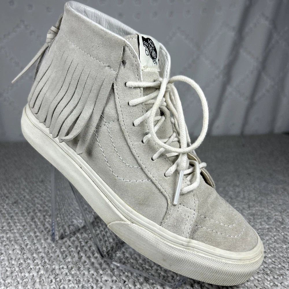 RARE🔥 VANS SK8-Hi Native Fringe Sneaker 5/6.5 Gray Leather Sneaker Skateboarding. Condition is Pre-owned. Shipped with USPS Ground Advantage.