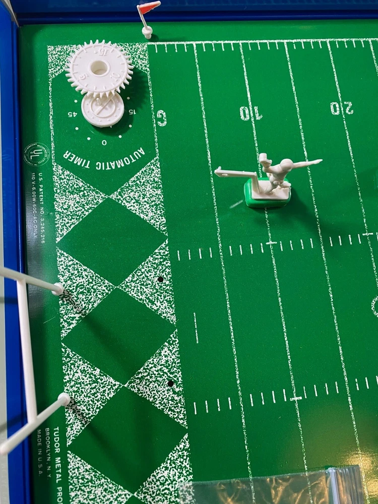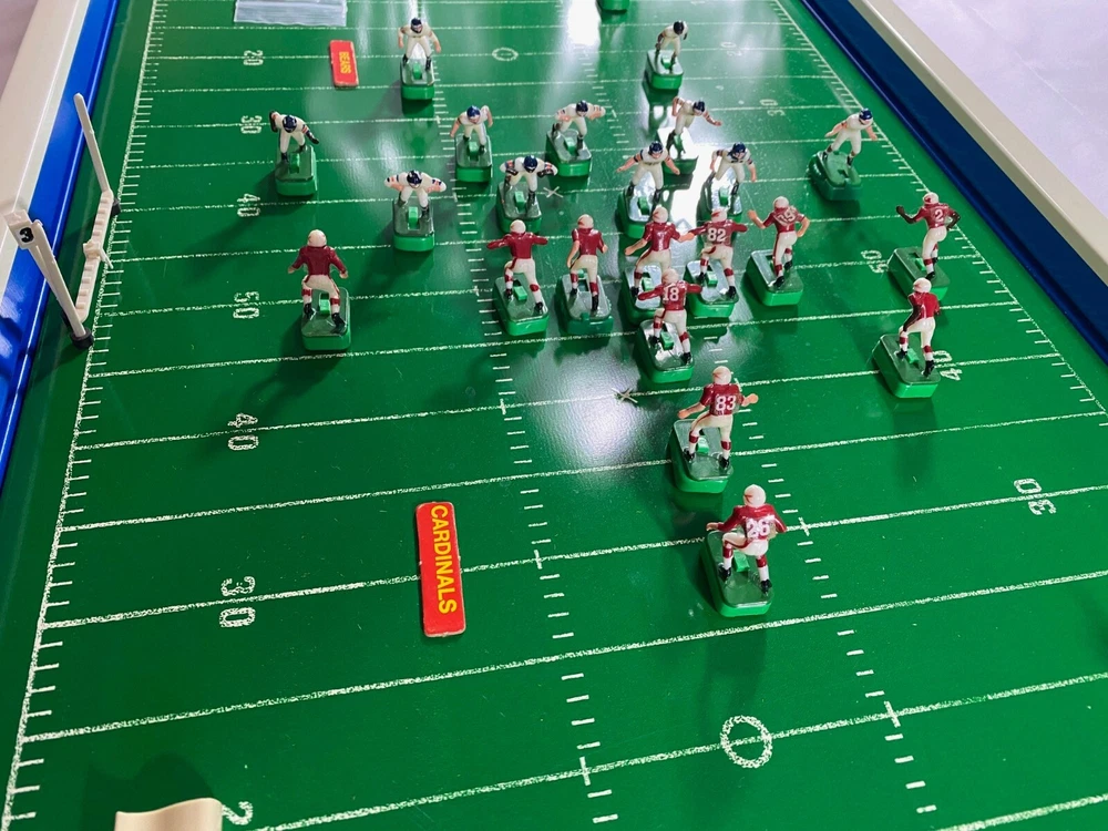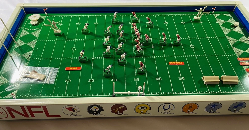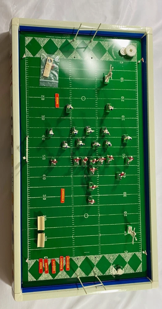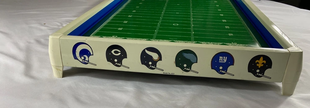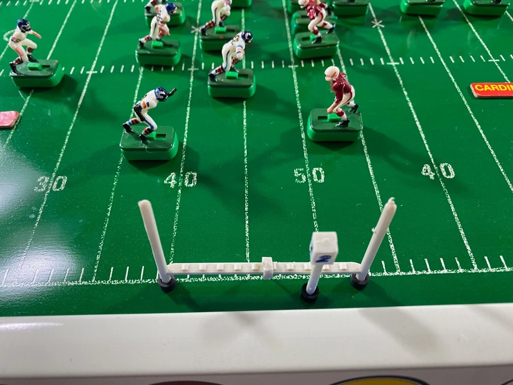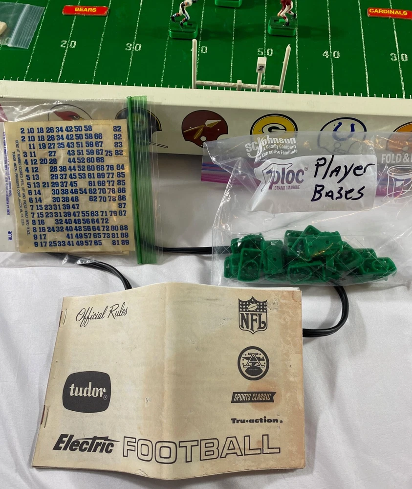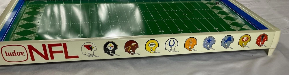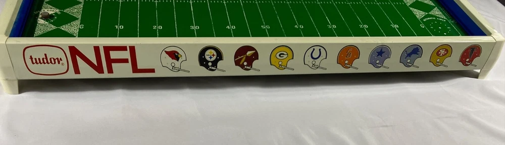 Rare Vintage 1969 Tudor NFL Electric Football #619 Game Bears vs Cardinals-Works!! This rare vintage Tudor NFL Electric Football Game features the Bears vs the Cardinals and was made in 1969. The game is in working condition, is in the original box, and is a complete game except for the scoreboard. It has all 24 players and bases, 2 quarterbacks/kickers, extra bases for players, 2 goal posts, 4 end zone flags, First down marker and "chains", and the timer. This rare model also has the depiction of the New Orleans Saints Helmets in BLACK! which never went into production and they only wore in preseason in 1969. Because the owner did not register them with the league, the Saints were not allowed to wear the black helmets. Thank you for viewing this listing. Please reach out to us directly if you have any questions. Please note that we offer free returns up to 30 days after purchase. If you are not happy with the item(s) for any reason, simply open a return, send it back for free, and we will refund your money in full. Thank you for your business!