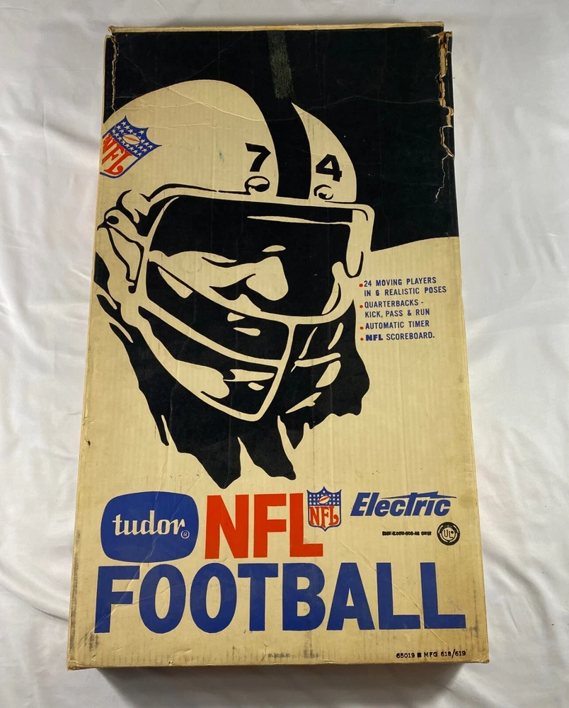 Character Family: Football Gender: Boys & Girls Game Type: Electronic Football Game Year: 1969 Min. Number of Players: 24 Age Level: 8-11 Years, 12-16 Years Theme: Sports Country/Region of Manufacture: United States Brand: Tudor Games