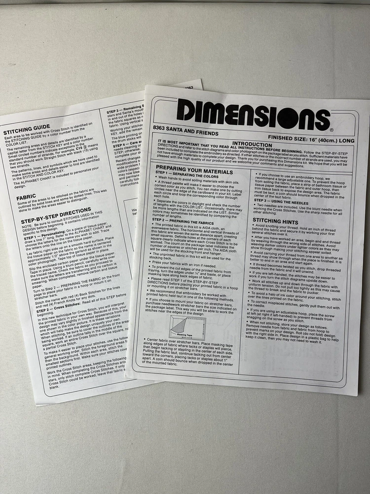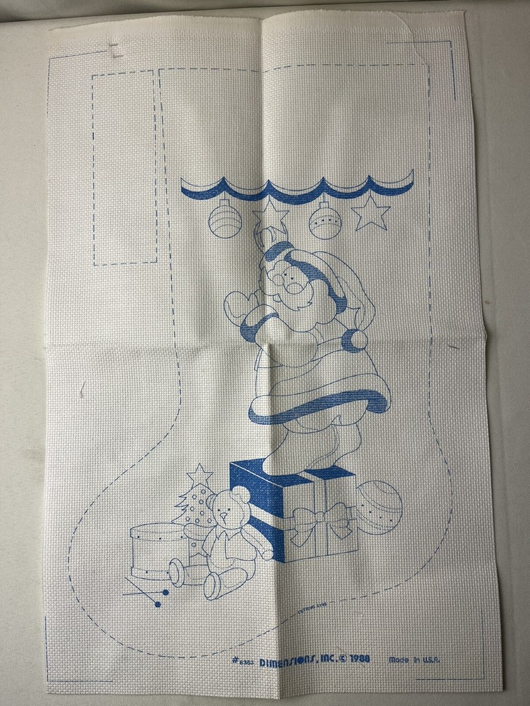 Rare Vintage 1988 Dimensions Santa and Friends Cross Stitch Stocking Kit #8363. Package is open and what is pictured is what is included.