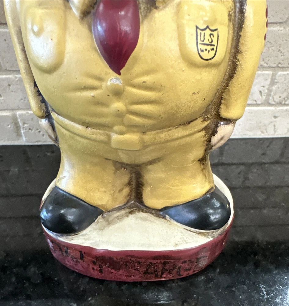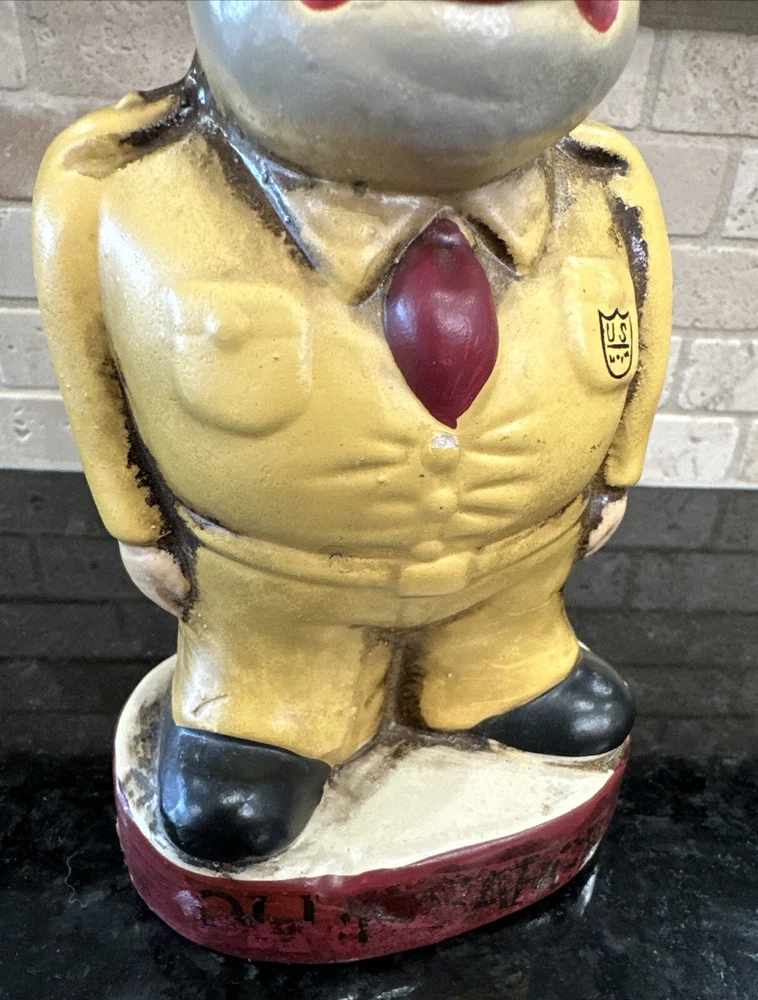 Rare Vintage Buco Chalkware Bank. Texas A&M Olde Sarge College Mascot Really rare and great color!! This presents very well, the Olde Sarge is faded away on the front and it does shows its age. See photos and enjoy!!