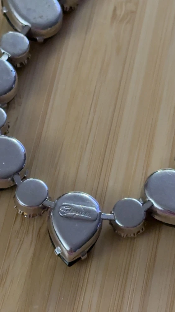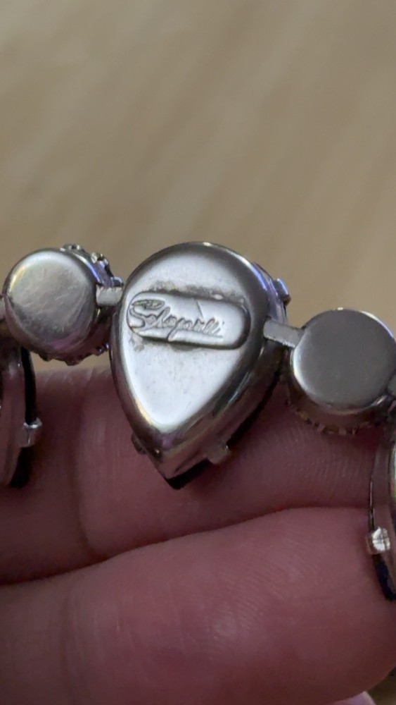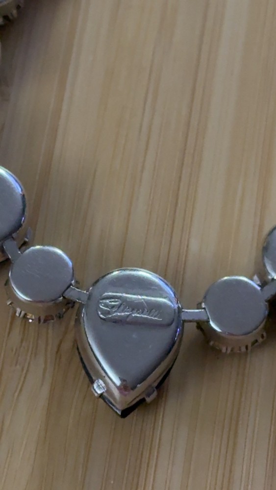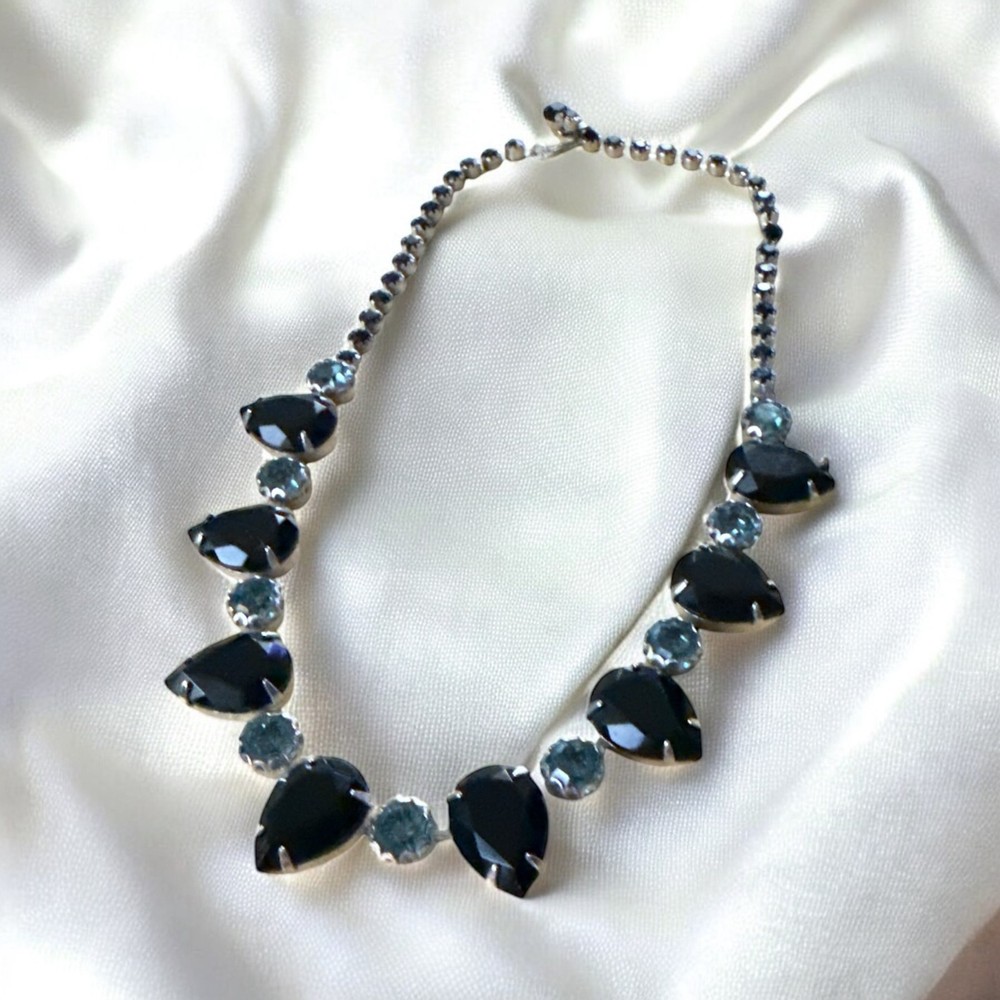 This rare vintage signed Elsa Schiaparelli black and blue rhinestone beaded necklace is a stunning piece of jewelry that exudes elegance and charm. Featuring a teardrop pendant shape and a pear-shaped main stone, this necklace is a perfect accessory for a birthday or special occasion. The rhodium plated metal, rhinestone materials, and retro era design add to its timeless appeal. Made in the United States during the 1935-1950 period, this choker-style necklace with a hook closure showcases the brand's signature style and craftsmanship, making it a valuable addition to any jewelry collection. This is in excellent condition. Length: 7.5" 🌟 Please note I am a veteran seller of 17 years under (TheChic_SheShed) I opened this account to move my jewelry to, as I closed my etsy shop. So please do not mind the little feedback. Check out my other account. If you have any questions please ask 🌟