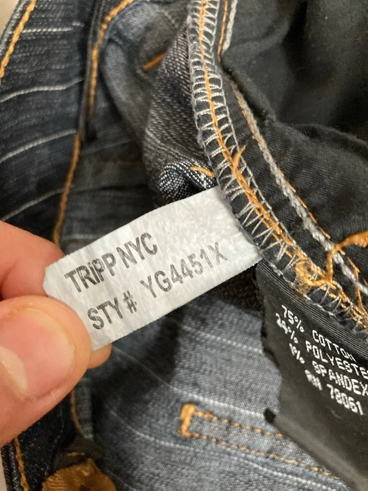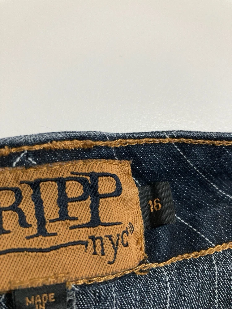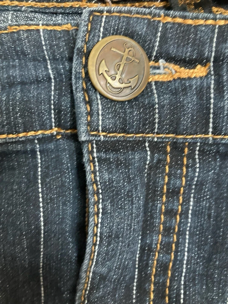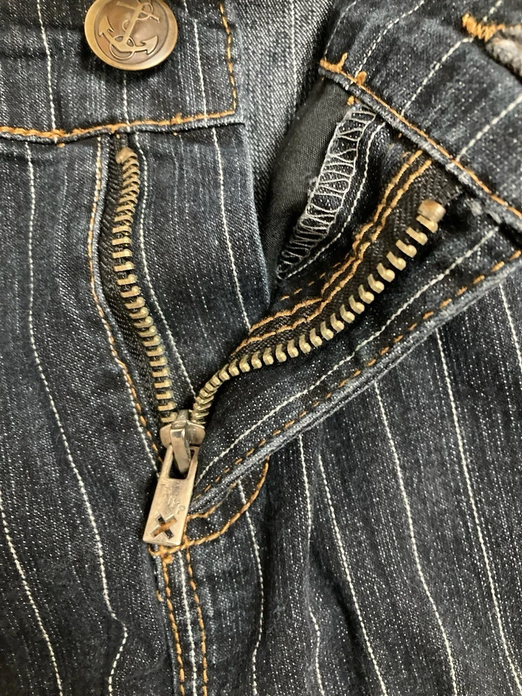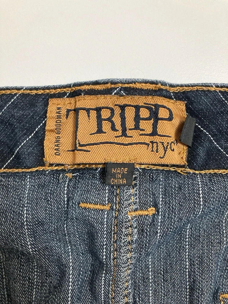 Rare Vintage Y2K Tripp NYC 16 Pinstriped Sailor Denim Pencil Skirt Dark Wash