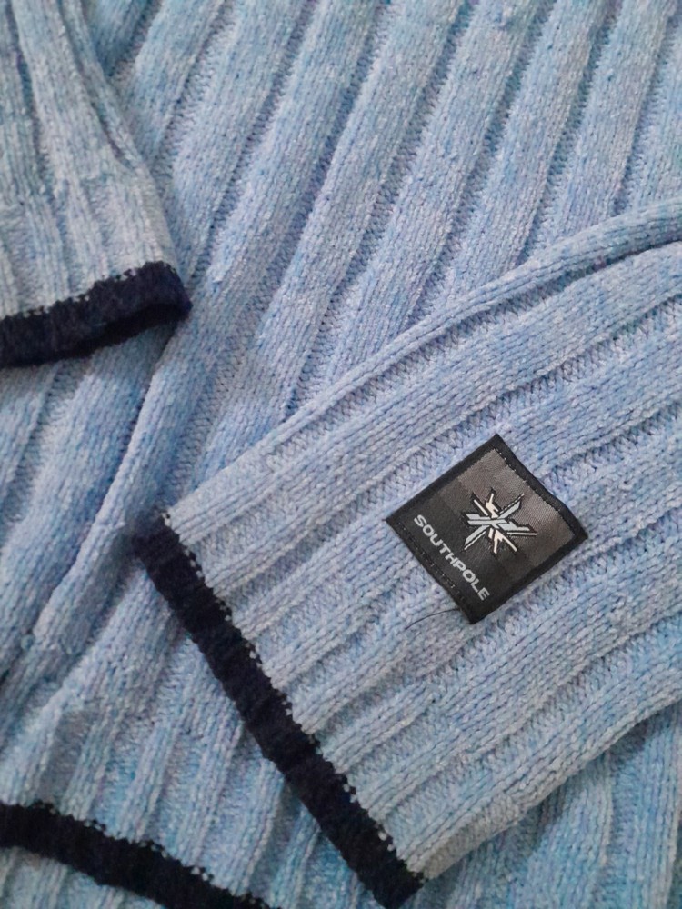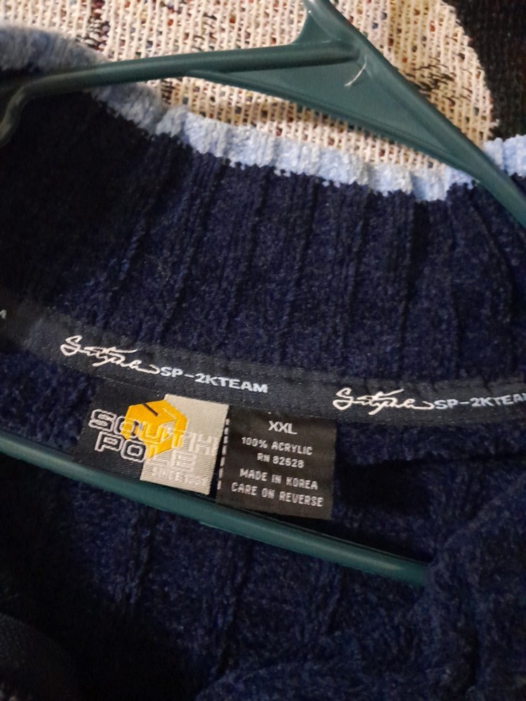 This rare vintage Southpole men's sweater in size XXL is a 90s-themed pullover with a high neck and tight-knit acrylic fabric in a blue color. The long-sleeve sweater features a logo accent and is machine washable for easy care. Perfect for casual occasions in the winter or fall, this pullover is ideal for walking and other everyday activities. Made by the brand Southpole, this sweater offers a vintage style with a modern twist for a unique and stylish look.