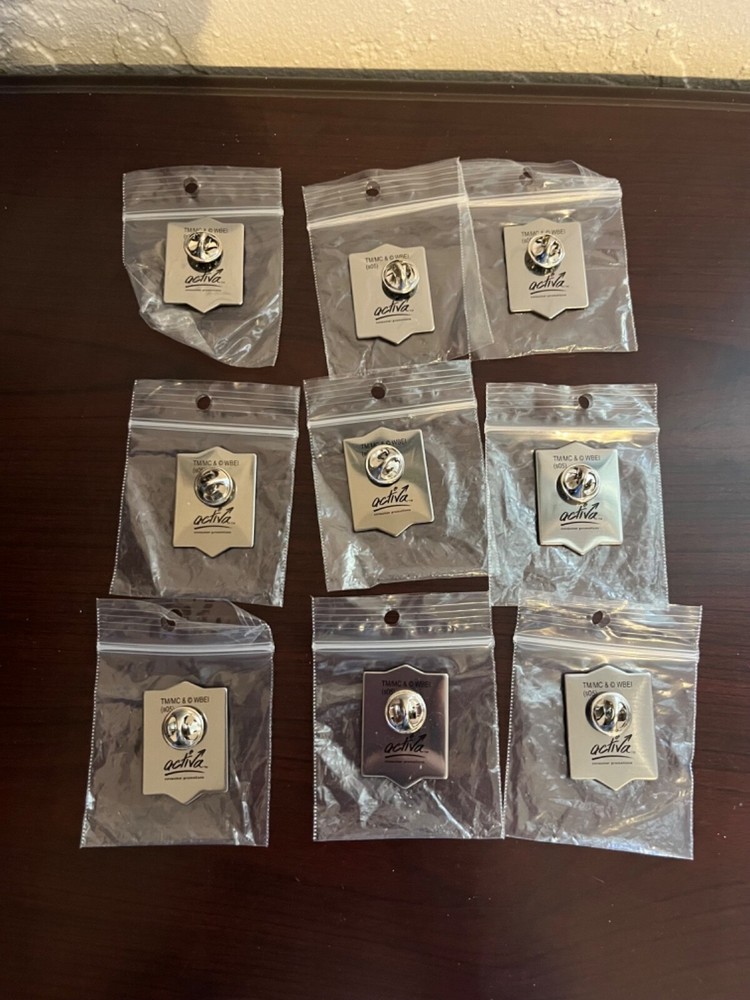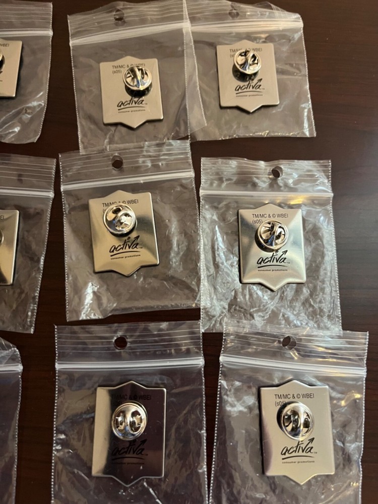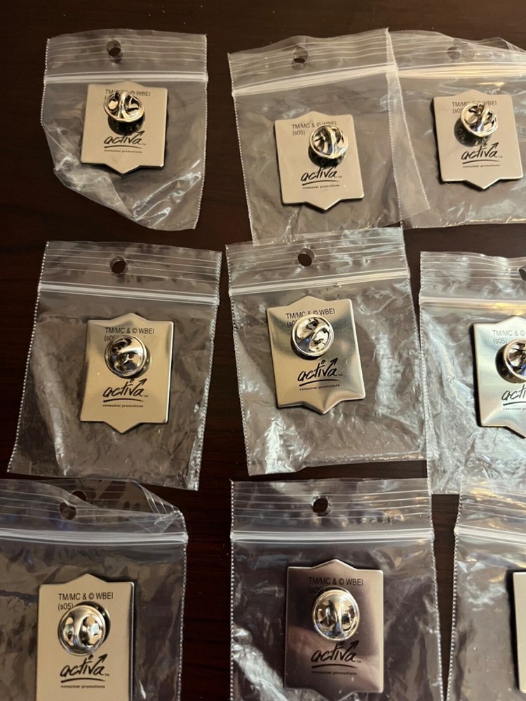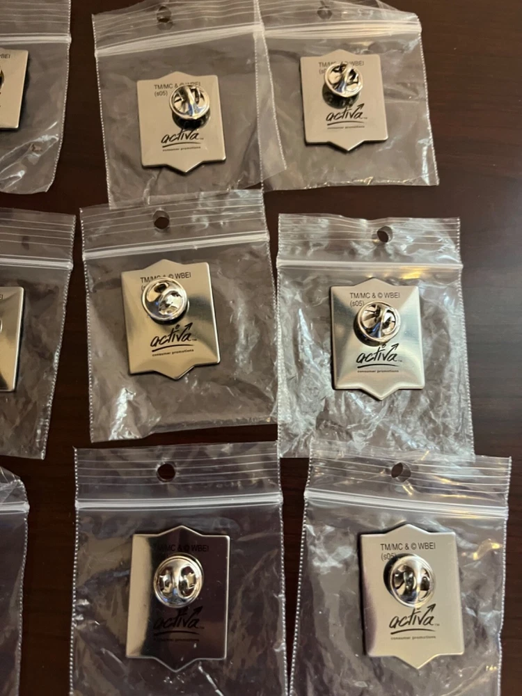 Warner Brothers Activa Lot of 9 promo promotional pins from 2005. This set is extremely difficult to find and is extremely rare. The pins are approximately 1 inch by 1 inch. The set includes the 9 pins pictured. None of them have been used and have been stored in a box. I am liquidating my entire Harry Potter collection so check back for new listings. I am happy to combine shipping to save on costs. All sales are final and sold as is.