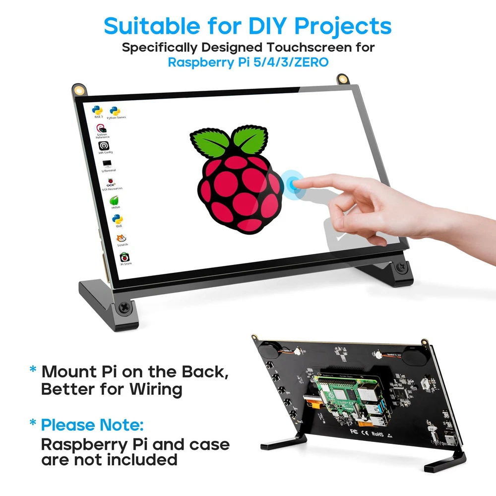 [IPS FHD Resolution & 178° Full Viewing Angle]Coming with 1024*600 FHD resolution, supporting up to 1920*1080, 10.1’’ Raspberry Pi monitor offers brighter,crisper and clearer images than general 800*480 resolution.IPS panel provides full color display,and 178° full viewing angel allows you to view this amazing touch screen monitor from all angles.Warm tips:To present top-quality image and smooth touch experience,please remove both of two screen protector films,or at least the top one [Responsive, Accurate and Smooth Touch] Due to its 3-5 ms response time,the touch interface of this 10 inch monitor is fairly responsive,accurate and smooth,and you don’t need to do a manual calibration. hdmi monitor supports 5-point capacitive touch and multi-touch gestures such as tap,press,zoom in/out,click of mouse. Besides, this touchscreen monitor works well in various operating systems right out of the box with no additional drivers or setup needed, plug and play [Widely Compatible with Various Devices and OS] 10.1’’ Raspberry Pi touchscreen is perfectly ideal for all versions of Raspberry Pi including Raspberry Pi 5/4/3/Zero/400. You can also use this lcd screen on other devices like Octo Pi, Banana Pi,Retro Pi, game consoles( NS / XBOX / PS4), computer, TV boxes etc..Besides, this hd monitor has great compatibility with various OS such as Windows, Mac, Noobs,Debian, Ubuntu, Kodi [Dual Built-In Speakers & Larger Size] Equipped with dual built-in speakers,this lcd display delivers loud and trust sound.Furthermore,touch screen monitor features a larger size-10.1'',which will be a bonus for guys who want to use this monitor to watch videos or play game emulators.This hdmi display also works great for other applications such as Security DVR Screen/Car Dash-Mounted/Industrial Control Process Stats Monitor/Monitor Temps and Speeds of Computer/RetroPi Game Console [Comprehensive Accessories & Simple Assembly & Clean Wiring] provides considerate package with thick cotton foam to protect this Raspberry Pi 4 screen from strong vibration. Package comes with everything you need to get this lcd monitor working, especially the gift cables for Raspberry Pi installation. You can easily mount your Raspberry Pi directly on the back of this Raspberry Pi display with gift cables completely hidden, providing a clean interface and cable management