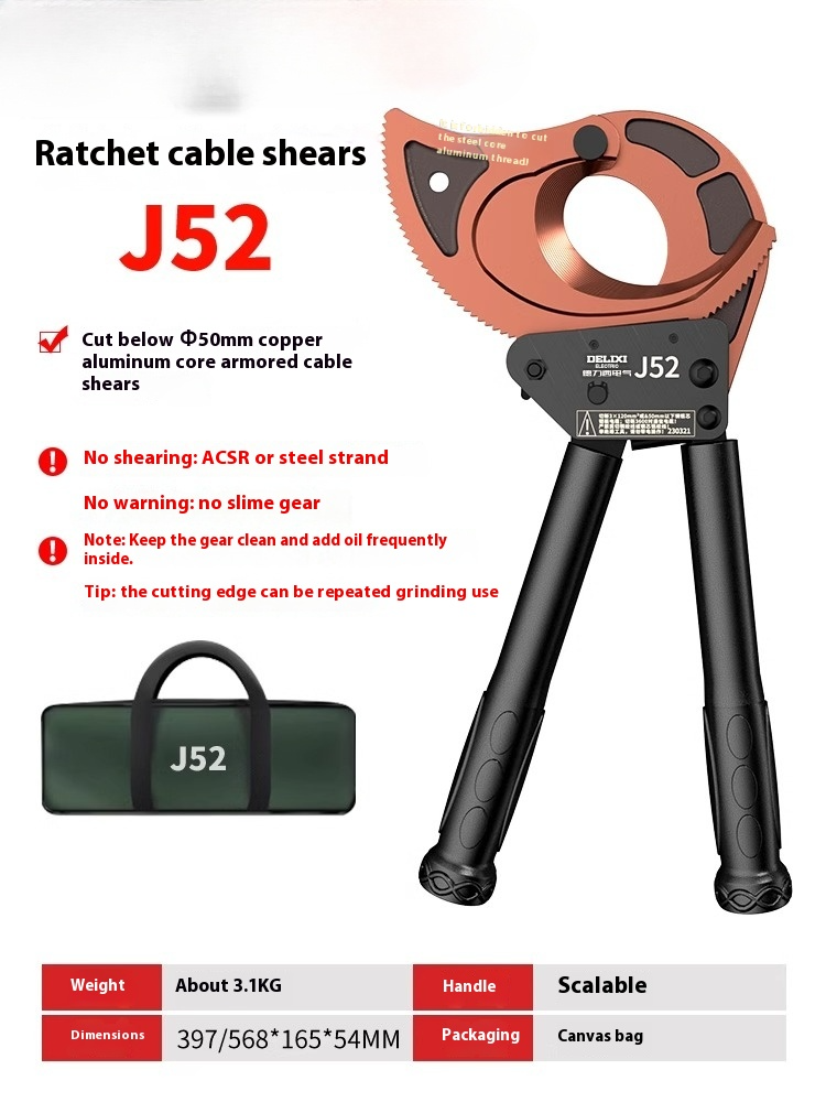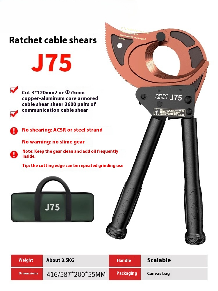 Ratchet Cable Scissors Special Gear Type Manual Cutters Electrician Wire Cutters J40 Industrial Grade Ratchet Cable Cutter Weight: about 1.15KG Size: 346*120*38MM Handle: non-retractable Packing: Canvas bag