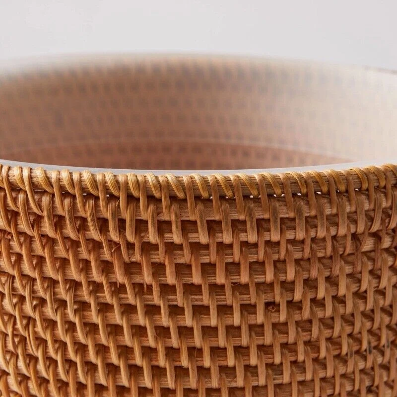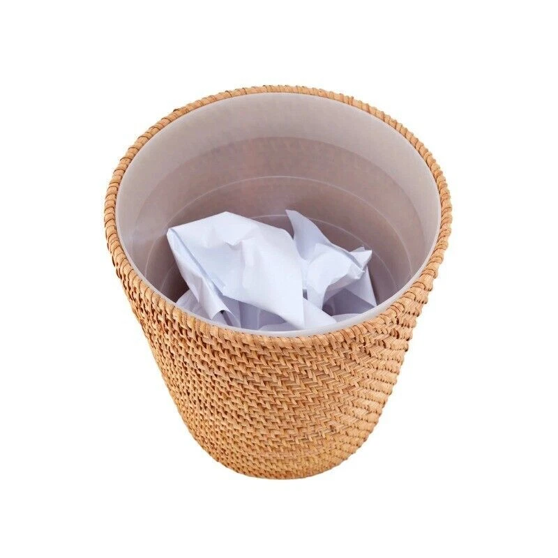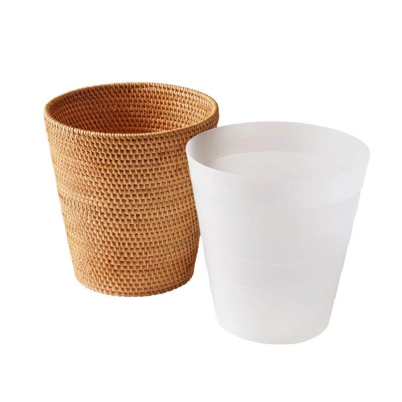 Headline : Elevate Your Bathroom with a Stylish Rattan Wastebasket Section 1: Product Overview Looking for a stylish addition to your bathroom that also serves a practical purpose? Introducing our handcrafted rattan wastebasket, designed to blend seamlessly into any bathroom decor. Crafted from durable polyethylene rattan woven over a sturdy iron frame, this wastebasket is both visually appealing and functional. Section 2: Key Features Natural Charm : Its honey-hued finish adds a warm, natural touch to your space. Versatile Use : Perfect for bathroom waste disposal or decorative storage, enhancing both form and function. Easy Maintenance : Features a removable plastic liner for hassle-free cleaning and disposal. Spacious Capacity : Holds up to 2.5 gallons of waste, ensuring you won't need to empty it frequently. Section 3: Dimensions & Final Thoughts Measuring 11"H x 9"D (Top) x 7"D (Bottom), this wastebasket is the perfect size for most bathroom countertops or corners. Add a touch of elegance and practicality to your bathroom with our rattan wastebasket today. On Jan 6, 2025 at 04:23:42 PST, seller added the following information: