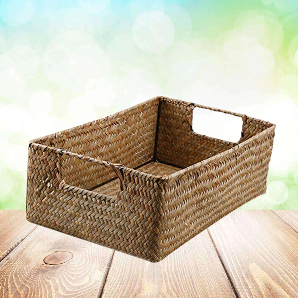 Product parameters Product Name: Straw Storage Basket Material: Iron+Seaweed Color: Yellow, Coffee Dimensions: as follows Yellow small mouth length 34cm, width 24cm, height 11cm, weight 0.26kg Reminder: The storage basket is woven with seaweed. Imperfect weaving and burrs are normal and do not affect use. It has natural splicing joints and is not a quality issue. The size is manually measured, and 1-2 centimeters are normal. Package includes 1 x Storage Basket On Feb 11, 2025 at 01:50:10 PST, seller added the following information: