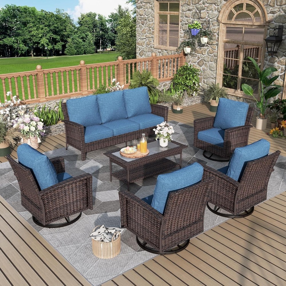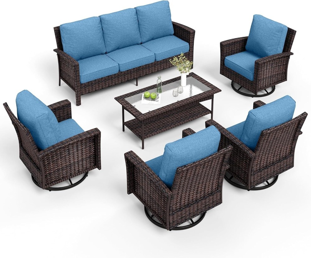 Chair Color: Blue Model: Rattan Furniture Color: Blue MPN: Does not apply Seating Capacity: Up to 7 Table Length: 47.2 in Assembly Status: Part Assembled Chair Height: 35 in Umbrella Included: No gtin13: Does not apply Table Width: 23.6 in Number of Items in Set: Seven-Piece Cushion Color: Blue Style: Outdoor Furniture For 4: Rattan Furniture Material: Wicker For 3: Patio Furniture Set Features: Unltra Soft, Cushion Included Manufacturer Warranty: 1 Year Set Includes: Cushions, ottomans, sofa UPC: Does not apply Chair Back Material: Wicker Type: Wicker Furniture Seat Depth: 24 in Assembly Required: Yes Year Manufactured: 2025 Chair Width: 32.2 in Country of Origin: China Table Shape: Rectangle For: Outdoor Furniture Set Cushions Included: Yes Brand: PHI VILLA Department: Adults, Kids For 2: Outdoor Conversation Set