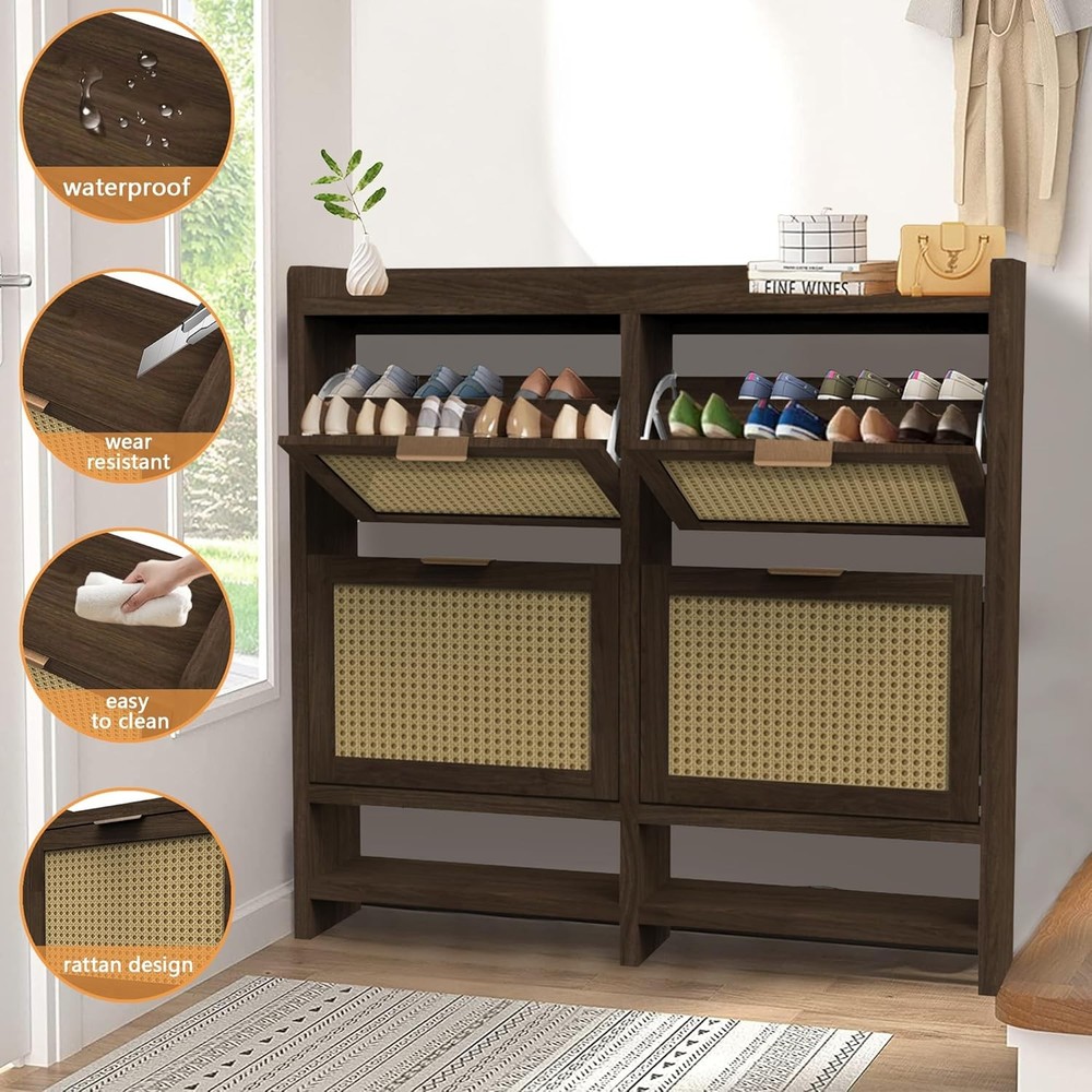 Just got this shoe cabinet and it's a total game-changer! The rattan drawers look so chic in my entryway and flip open smoothly. Love the extra shelf for storing bags too – perfect blend of style and function!