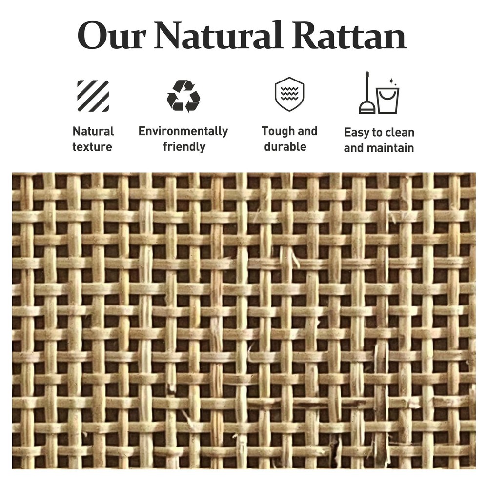 Charming Rattan Design: Our sideboard cabinet combines wood grain panels with natural rattan, creating a delightful boho-chic vibe. Diagonal bronze knobs add a unique touch, adding warmth and organic elegance into any room. Generous Storage: Featuring an adjustable inner shelf that can be set at three different heights, our rattan cabinet offers ample space. It easily accommodates tall wine bottles, low plates, and dinnerware, ensuring a tidy and organized space. Sturdy Construction: Crafted from robust P2-grade MDF and breathable natural rattan, this accent cabinet guarantees durability and safety. An anti-tipping design adds extra security for you and your family. Versatile Use: Whether as a storage organizer, sideboard, or buffet cabinet, its compact size fits seamlessly in living rooms, dining rooms, kitchens, or entryways. Keep essentials within easy reach and enhance any space with its practical design. Easy Assembly & Cleaning: Overall dimension is 28" W x 16" D x 27" H. Our sideboard cabinet includes clear instructions and hardware for easy assembly. For upkeep, simply wipe it clean with a cloth to keep its pristine appearance effortlessly.