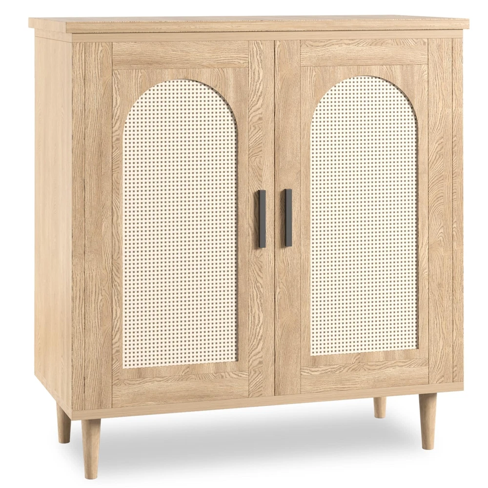 【Durable & Stable Structure】Crafted with premium MDF (high-density fiberboard),this cabinet combines sustainability and strength.MDF’s humidity-resistant-resistant,warp-proof design offers 20-30% higher load capacity than standard wood,with lower expansion rates (<0.3% in humidity) to keep doors flawlessly aligned. Includes anti-tip hardware for secure wall-mounted installation, minimizing tipping risks. 【331L Versatile Storage】Dimensions: 14.96"D x 47.43"W x 28.54"H. Two spacious compartments and two adjustable shelves fit tall wine bottles, short plates, shoes, or small items—ideal for organizing while keeping hazards away from kids/pets. 【Timeless Farmhouse Charm】Blends bohemian-inspired rattan doors with modern wood finishes.Perfect as a buffet,sideboard,credenza,TV stand,or coffee table.Seamlessly complements entryways,living rooms, or bars for understated, textured elegance. 【Built-In Power Hub】Features 2 AC outlets + 2 USB ports to power entryway lights,coffee makers,bar accessories,lamps,phones,and more.Streamline charging—no messy cords! 【Easy to Assemble】All components are labelled,and comes with detailed instruction and provided tools,this rattan sideboard will be engaged in work and refresh your dining room,hallway,entry,living room quickly