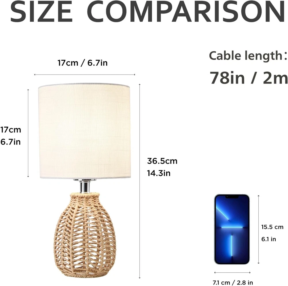 Store New Arrivals Add to Favorite View Feedback Contact Rattan Table Lamp, Small Nightstand Lamp with Linen Fabric Lampshade, Desk Lamp Bedside Lamp for Living Room Home Office Description Item Weight 0.44 Kilograms Bulb Base E26 Product Dimensions 6.69"D x 6.69"W x 14.37"H Finish Type Iron Base Material Metal Type of material: Rattan and metal, handmade natural materials. Not only light and safe, but also very artistic.This Rattan Wicker lamp illuminates your room and gives you a sense of nature in your home. Rattan table lamp dimensions. 14.37" high, 6.69" wide, 6.69" diameter, 70" long cord. Size and design make this woven table lamp a gorgeous accent piece for home decor. The plug-in rattan lamp comes with an ON/OFF button switch for soft light to better protect your eyes. Perfect for living room, bedroom, nightstand, nursery, library, college dorm, study, coffee table, dresser, office and more. AC: 110-120V, Max power: 60W, also compatible bulb types: LED, CFL, halogen or incandescent.You need to prepare bulb youself. No additional mounting is required. High quality, if you have any questions about our rattan table lamps, please feel free to . Mini Vintage Rattan Table Lamp E26 Bulb Night Light for Bedroom -Material: Metal/Rattan -Color: Brown -Weight: 0.66kg -Voltage: AC 110-120v -Wattage: Max 60w -Bulb Base: E26 base(no bulb include) Widely Use indoor: living room, bedroom, study, office, hotel bedside. You can also use halogen lamps, LEDs, incandescent lamps. Maximum 60W (it is recommended to choose the appropriate wattage according to your required environment). Easy assembly, no tools need. Screw the E26 LED bulb onto the light fixture. Package 1 * Industrial Weaving Table Lamp ABOUT US We offer the best prices around on high quality products. Our E-store includes media such as books, movies, music and games while offering electronics, toys, sporting apparel, clothing, tools, general home, garden items and more. SHIPPING We are always working hard to ensure your package arrives as soon as possible. Please understand that some factors like weather, high postal traffic, and the performance of shipping companies are outside of our control. We offer free shipping to the lower 48 states and ship within 2 business days of payment, usually sooner. We do not accept P.O. Boxes. Please provide a physical address. For shipping outside of the continental USA, we only use eBay's Global Shipping Program.The item is shipped to KY and then sent to the rest of the world. International customers are responsible for all duties and taxes. Continue to check out in order to calculate costs for shipping the item to your country. Messages regarding eBay's Global Shipping Program MUST be directed at eBay EXCLUSIVELY. RETURNS We offer a 30-Day Return Policy on items which you are not completely satisfied with. You have the option for a full-refund or an exchange of the item. No returns are available on items shipped outside of the USA. PAYMENT We accept PayPal. CONTACT US This page content is yet to come Please ad us to your favorite seller and visit again later Thank You CUSTOMER SATISFACTION We try our very best to make sure every customer is completely satisfied. If there's a problem, message us! We're happy to help. WE ACCEPT Copyright © 2021 AutoDS. | All Rights Reserved