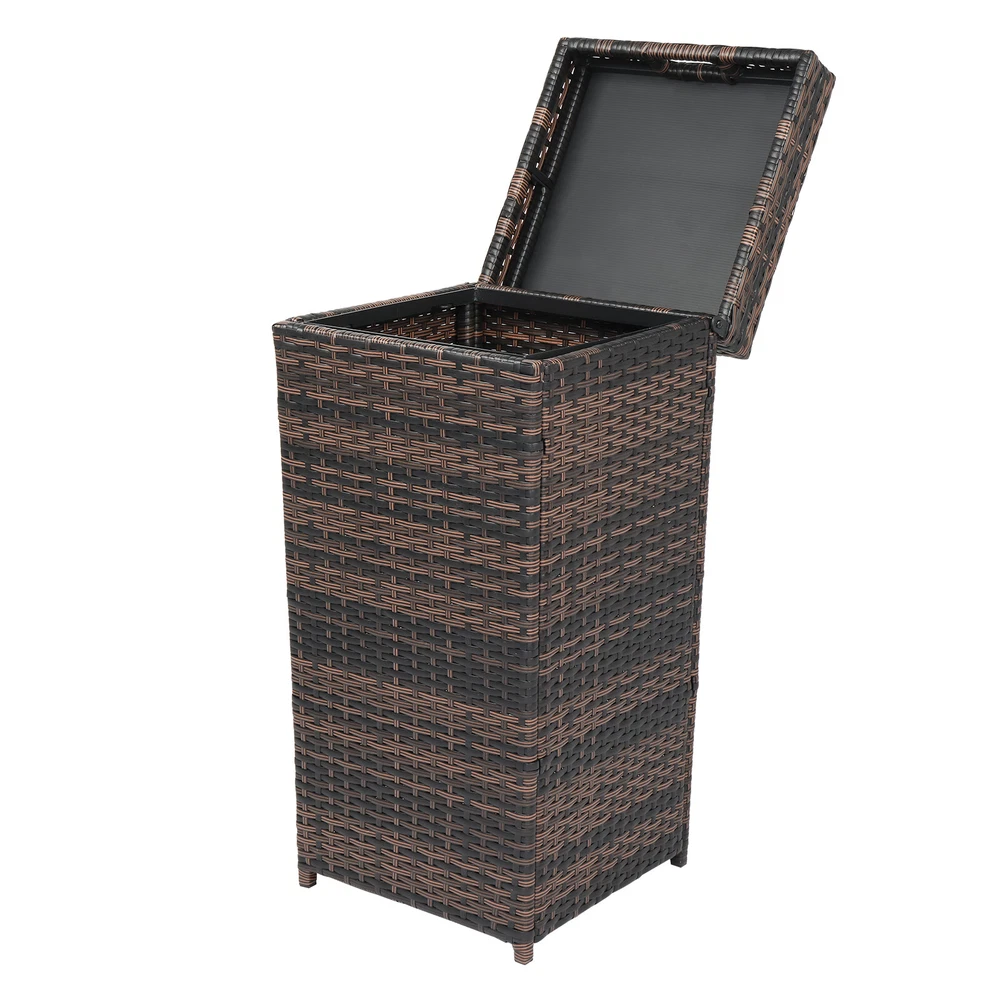 Specifications: 1. Material: PE Cane Iron 2. Color: Brown Gradient Cane 3. Overall Size: ( x 31.89)" / (40 x 40 x 81)cm(L x W x H) 4. Cover Size: ( x 3.15)" / (40 x 40 x 8)cm(L x W x H) 5. Box Size: ( x 28.74)" / (40 x 40 x 73)cm(L x W x H) 6. Storage Space: (14.37 x 14.37 x 26.97)" / (36.5 x 36.5 x 68.5)cm(L x W x H) 7. Digging Hand Size: 10 x 4cm 8. Iron Bag Hanging Frame: (13.39 x 13.39 x 0.79)" / (34 x 34 x 2)cm(L x W x H) 9. Gallon: 24 Coupons 10. Weight: 17.42lbs / 7.9kg Package Incldes: 1 x Trash Can 1 x Hardware Assembly Accessories 1 x English Manual Introductions: Here we introduce our With Top Cover Iron Frame Rattan Trash Can, which can be used indoors and outdoors. It is made of UV-resistant PE rattan and steel frame. The sturdy steel frame is durable and prolongs the service life. The rattan weave is exquisite in workmanship, and the shape is retro and elegant, which can match the home style. The detachable lid not only makes it easy to take out the trash and replace the trash bag, but also helps you keep the smell when you close it. Importantly, the internal frame can hold the trash bag in place. What are you still hesitating about? Hurry up and place an order! Features: 1. Can be used indoors and outdoors 2. Retro and elegant style 3. Can match the home style 4. Anti-UV outdoor resin wicker 5. Rugged and durable steel structure