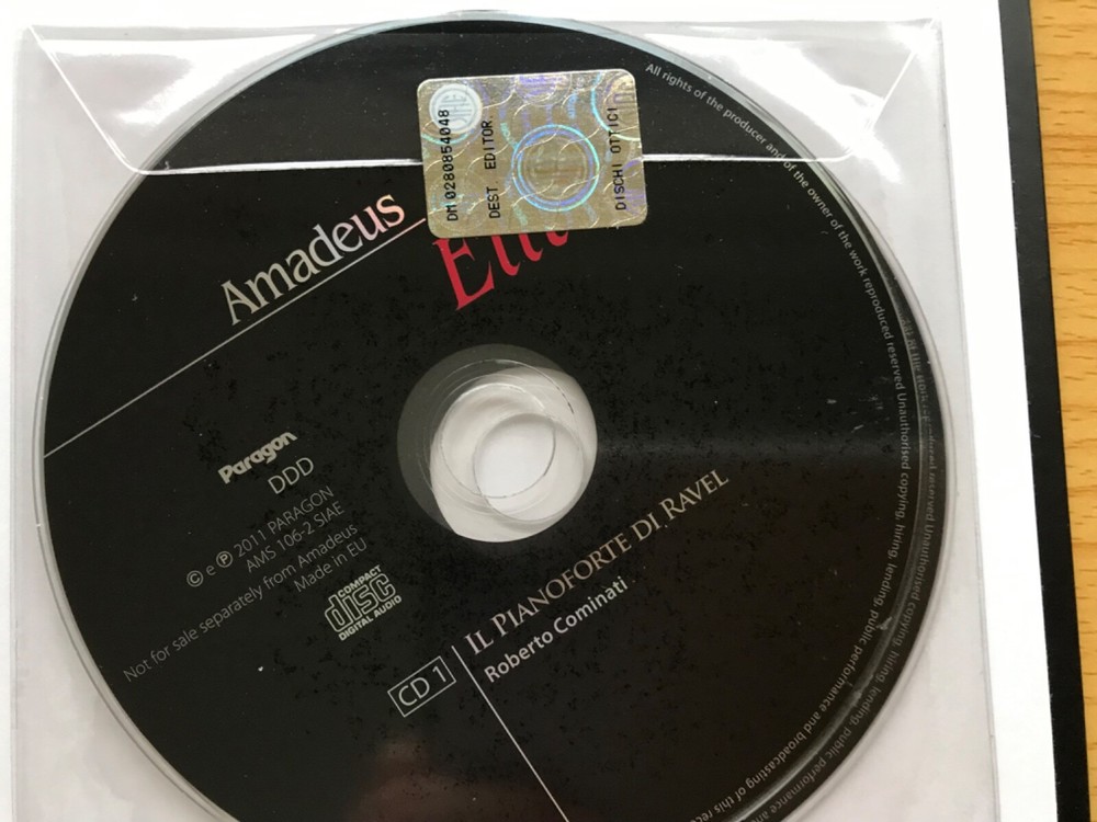 Il Pianoforte di Ravel - 2 CD set with hardback monograph on Ravel in Italian - Roberto Cominati (piano) The CDs are recordings of the complete piano works of Ravel. Brand new. I purchased this after witnessing a stupendous live performance by Roberto Cominati, overwhelmed by his exceptional musicality, musicality and poise. Because the item was already so rare, I was reluctant to open it and am now selling the book/CD set, because I’ve reached that point in my life at which it might be appropriate to begin rationalising my collection. FREEPOST: Royal Mail Tracked 24