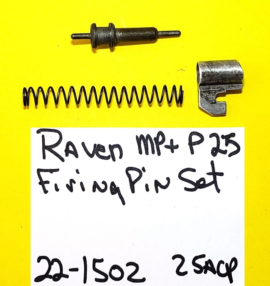 Material/Finish:STEEL AND ALUMINUMMaterial:Aluminum, SteelFor Gun Make:Raven ArmsColor:STEELSpecific Part:FIRING PIN, FIRING PIN SPRING AND, RETAINERUPC:Does not applyCountry/Region of Manufacture:United StatesType:FIRING PIN SETVintage:YesBrand:Raven Armsgtin13:Does not applyModel:P 25 MP 25Features:FACTORYMPN:Does Not ApplyFor Gun Model:MP 25 P 25For Gun Type:HandgunSeller Notes:“Raven Arms Model MP25 FACTORY FIRING PIN FIRING PIN SPRING AND RETAINER 22-1502A”Gauge/Caliber:25 ACP