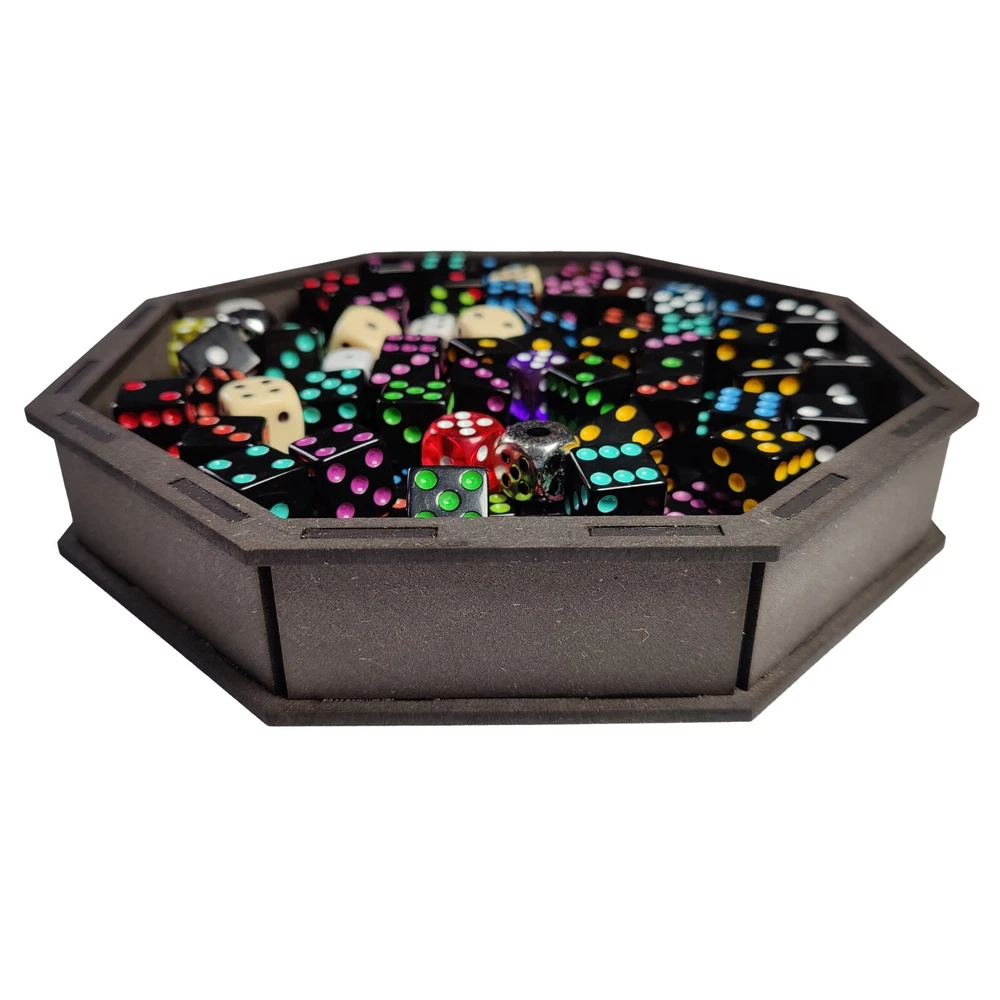 This Dice Tray is the perfect gift for fans of Tabletop Gaming, Board Games, Wargames and DnD. If it’s a square wooden dice tray, octagon dice tray or neoprene folding dice tray you want, we’ve got a huge range of designs in our store. Made and hand finished from laser cut black MDF with printed neoprene inlay for a statement tray with an even rolling surface, with a large surface area thanks to the octagon shape. Prevents lost dice, crawling around on the floor for that elusive D20, chasing the dog for a die they've picked up, arguing over a strategically placed corner die wedged in the carpet etc... 🎲Dice Tray Information🎲 ◾External Size - 25.5cm x 25.5cm x 3.7cm ◾Internal Size - 18.5cm x 18.5cm x 3.2cm ◾Inlay on printed neoprene ◾This wooden framed dice tray is made from black MDF ◾Dice NOT included 🏠Our Processes🏠 ◾Our dice trays use rubber backed neoprene for their bases/liners to reduce noise and give an even roll ◾Printed by us in house using vegan friendly sublimation inks ◾We cut and make our own dice tray frames on our laser ◾Shipped as fully assembled and ready to roll! Every dice tray gets a test roll prior to packing to make sure you get the best rolling tray surface possible for your dice! 📫SHIPPING📫 We offer safe and secure worldwide shipping, and can combine shipping at only 50p per additional item (highest base rate applies). Please note all our items are made to order in the UK and dispatched within the stated time frame. Not quite what you're looking for? Please check out my other items here- https://www.ebay.co.uk/sch/finch_rock_123/m.html