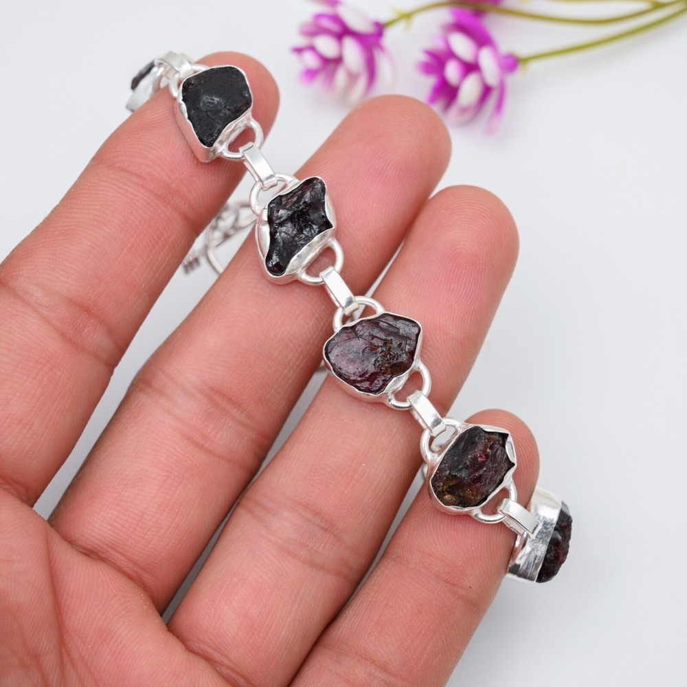 HomeRaw Garnet Gemstone Jewelry 925 Sterling Silver Handmade Chain Bracelet For Gift