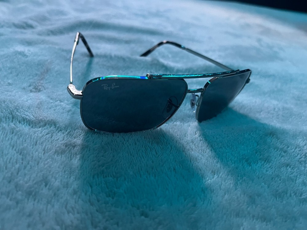 Elevate your look with the timeless Ray-Ban Aviator Sunglasses for Men, where classic design meets modern style. The silver frame exudes a versatile appeal, complemented by tinted blue lenses that not only add a hint of color to your eyes but also offer protection from bright sunlight.Crafted for those who appreciate the blend of fashion and functionality, these sunglasses embody the Ray-Ban legacy of quality and style. The metal theme echoes a robust construction, ensuring durability while maintaining a lightweight feel for all-day comfort. Whether you're out for a drive or enjoying a day in the park, these aviators are a seamless addition to any ensemble.