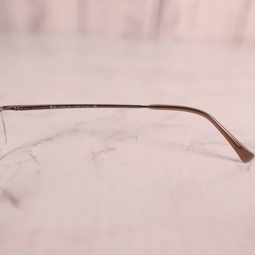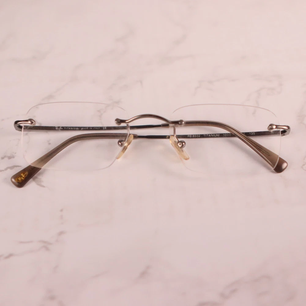 Bridge Width: 17 mm Brand: Ray-Ban Type: Eyeglasses Frame Material: Metal Temple Length: 135 mm Style: Half Rimless Lens Socket Width: 50 mm Frame Color: Gunmetal Country/Region of Manufacture: Italy Age Group: Adult Model: RB Department: Unisex Seller Notes: “Frame only, the lens are scuffed/scratched and will need replaced.”