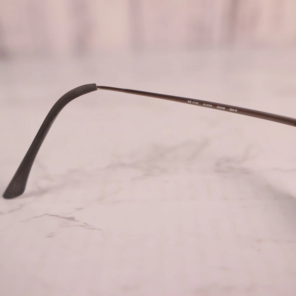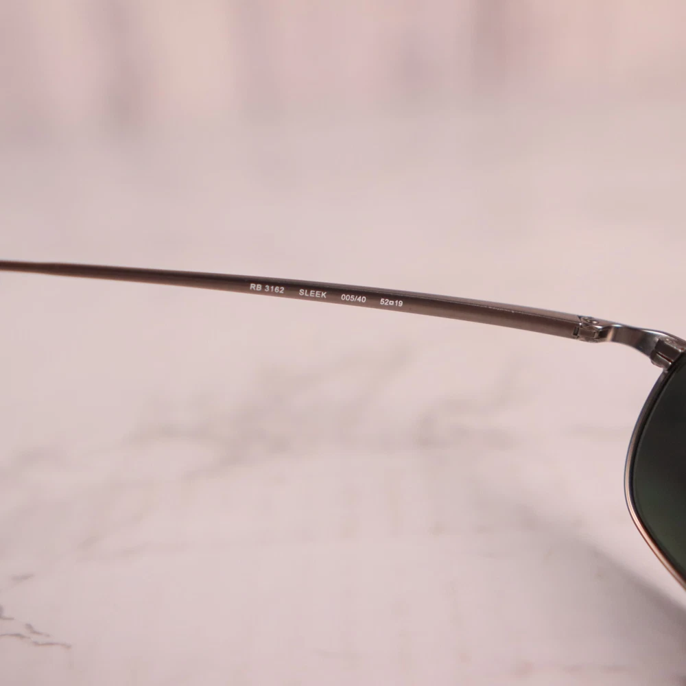 Brand: Ray-Ban Pattern: Solid Frame Color: Silver Seller Notes: “Frame only, the lens are scuffed/scratched and will need replaced.” Model: Sleek RB 3162 005/40 Country/Region of Manufacture: Italy Personalized: No Type: Sunglasses Features: Lightweight Style: Rectangle MPN: RB 3162 005/40 Vintage: No Frame Material: Metal Department: Men Magnification Strength: Unknown Theme: Metal