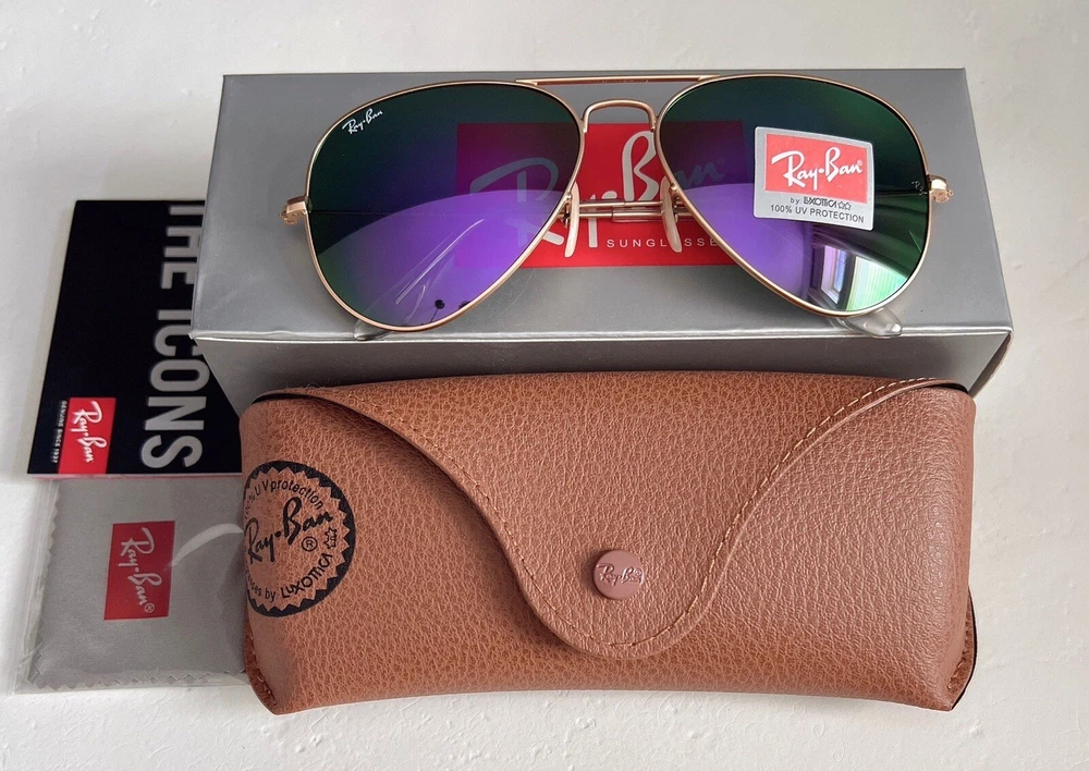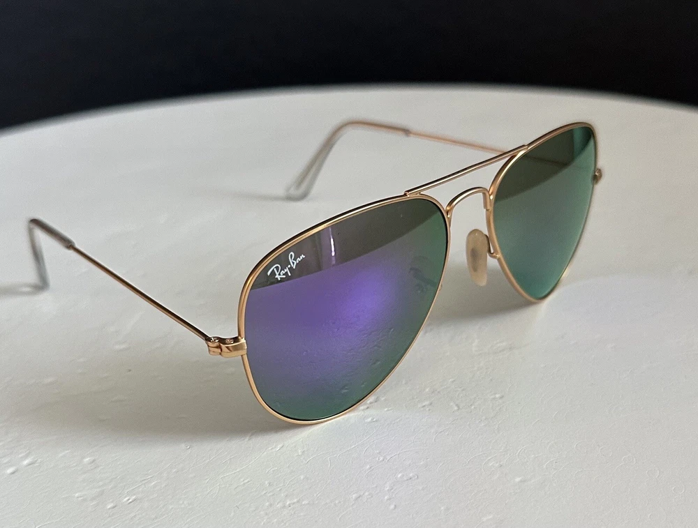 Features: Oversized, Reflective Frame Material: Metal UV Protection: UV400 Style: Aviator Lens Material: Mirror Pattern: Solid Theme: 80s, 90s, American, Band, Beach, Biker, Classic, Designer, Motorcycle, USA Frame Color: Gold Lens Color: Purple Vintage: No Country/Region of Manufacture: Italy Model: Ray-Ban RB3025 Temple Length: 135 mm Type: Sunglasses Brand: Ray-Ban Lens Technology: Mirrored Personalized: No Department: Women MPN: RB3025