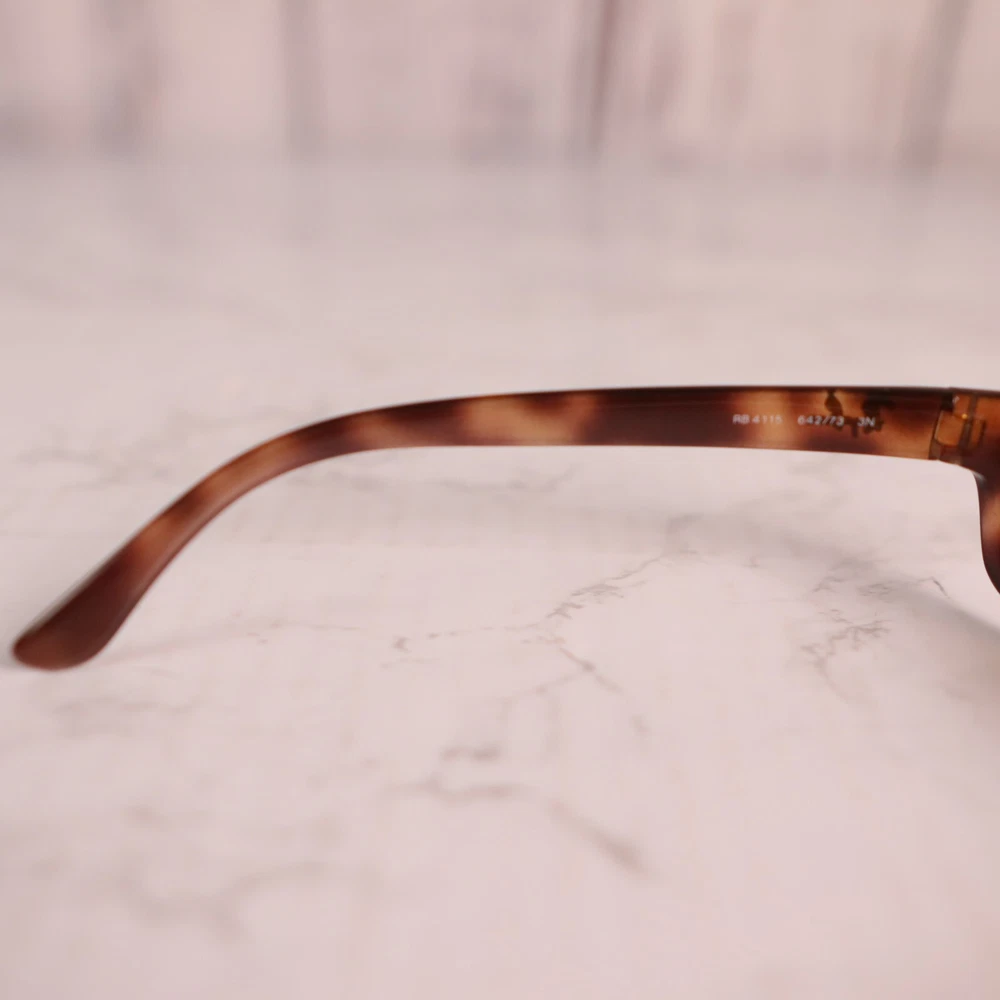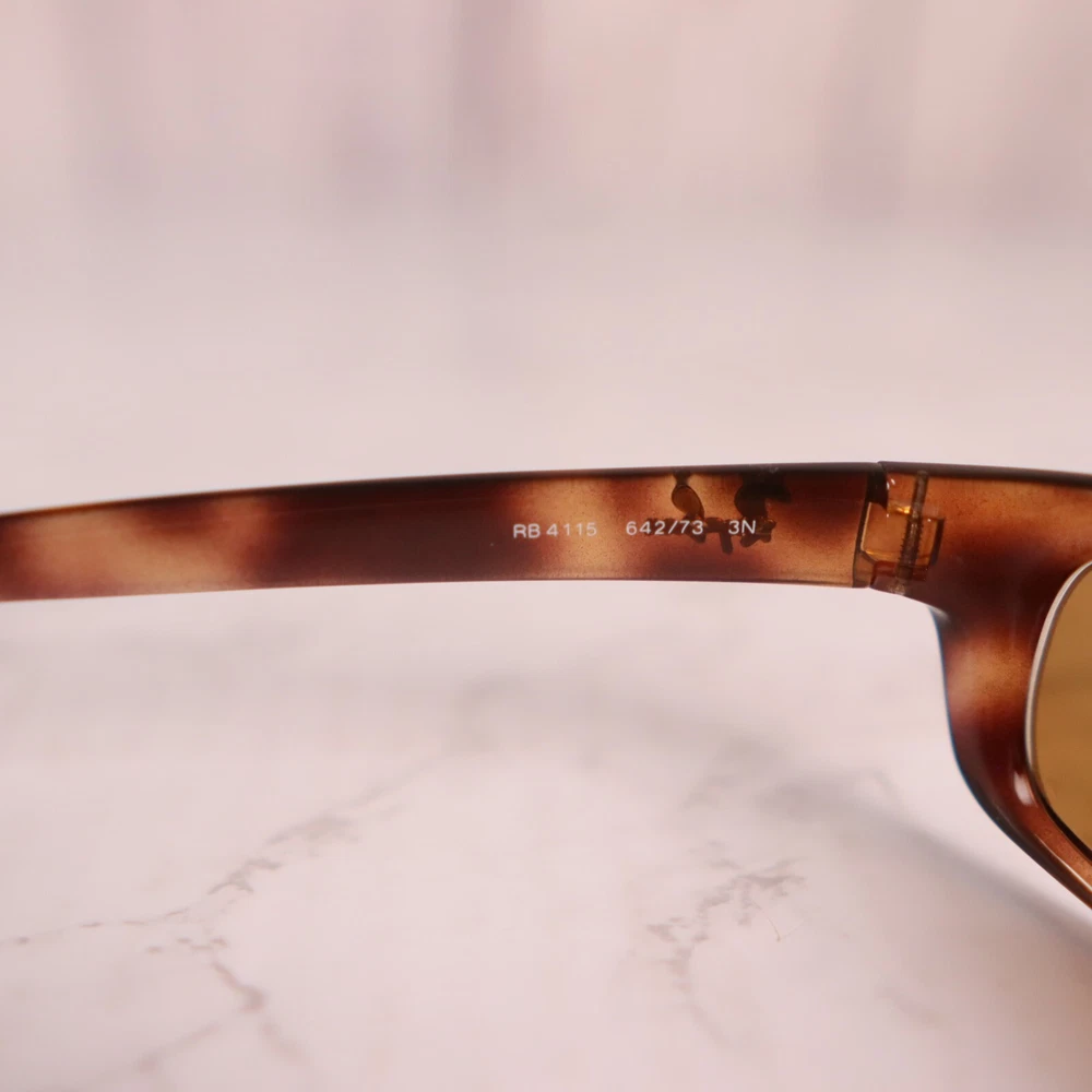 Department: Men Features: Lightweight Type: Sunglasses Lens Material: Plastic Vintage: No Frame Color: Brown Brand: Ray-Ban Pattern: Tortoise Shell Frame Material: Plastic Style: Wrap MPN: RB4115-642/73 Seller Notes: “Frame only, the lens are scuffed/scratched and will need replaced.” Personalized: No Country/Region of Manufacture: Italy Model: Ray-Ban RB4115-642/73 Lens Color: Brown Lens Technology: Polarized Theme: Designer