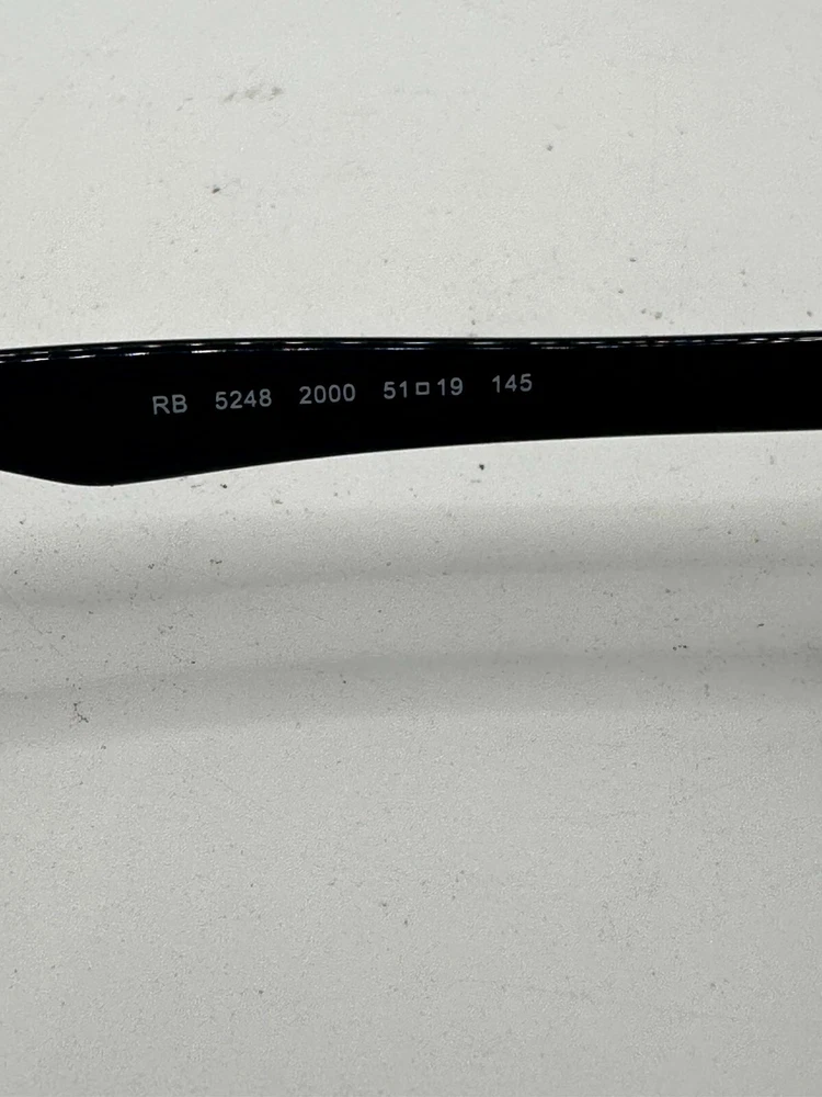 Pattern: Solid MPN: RB5248 Style: Square Features: Full Rim, Square Frame Material: Acetate Bridge Width: 19 mm Lens Socket Width: 51 mm Country/Region of Manufacture: Unknown Seller Notes: “Good Condition.” gtin13: Does Not Apply Brand: Ray-Ban Vintage: No Model: Ray-Ban RB5248 2000 Type: Eyeglasses Temple Length: 145 mm Frame Color: Black Personalized: No Theme: Modern UPC: Does Not Apply Department: Unisex Adults