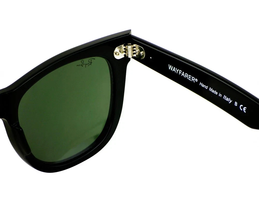Brand: Ray-Ban Features: Original Wayfarer Classic Lens Technology: Polarized MPN: RB2140 Theme: Classic Frame Material: Plastic Model: Ray-Ban RB2140 Lens Color: Green Lens Material: Glass Department: Men UV Protection: UV400 Country of Origin: Italy Style: Square Pattern: Solid Type: Sunglasses Frame Color: Black