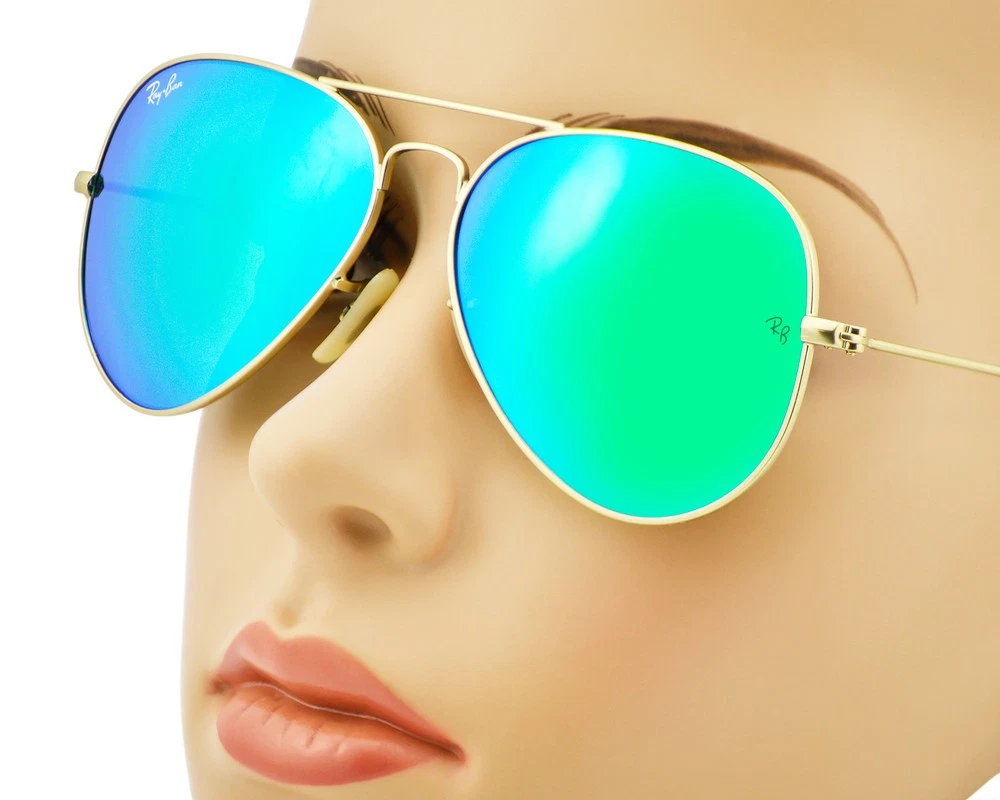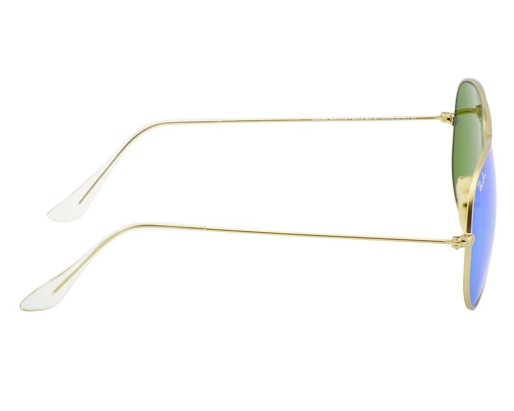 Ray-Ban Sunglasses RB3025 Aviator Flash Gold Frame Green Flash Lens 55mm Unisex Model No.: RB3025 Color No.: 112/19 Size Lens-Bridge: 55 - 14 Temple Length: 135mm Frame Material: Metal Frame Color: Gold Lenses Color: Green Flash Lenses: Non Polarized Shape: Pilot Style: Aviator Flash Lenses UPC: 8053672000566 Experience ultimate eye protection and vision clarity with Ray-Ban sunglasses. Ray-Ban sunglasses are designed to meet your unique vision needs and are certified with an engraved Ray-Ban signature on the right lens, and the iconic RB initials on the left. Our lenses provide 100% UV protection that not only keep harmful glare and reflections at bay, but also protect your eyes from the sun rays. Trust Ray-Ban to provide superior eye protection and a style that truly reflects your personality. Package Includes: 1X Ray-Ban cleaning cloth 2X Ray-Ban booklet 1X Ray-Ban case 1X Ray-Ban box 1X Protect outer box 1X Mini Screwdriver Repair Tool (*In selected models only) G.W: 300g/Pair The product is shipped by USPS within 1-2 business days and arrives at destination after 2-8 business days