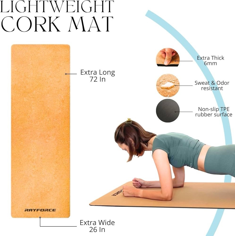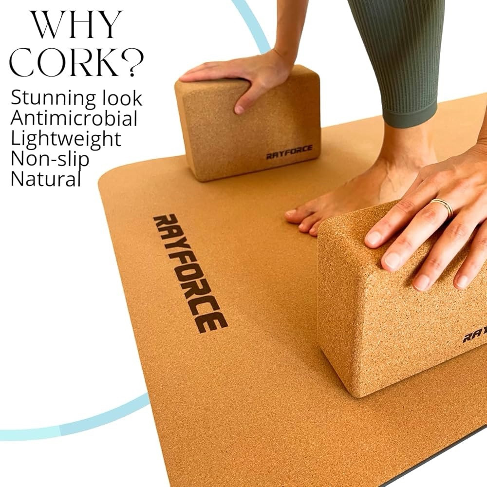 The Rayforce Premium Cork Yoga Starter Set includes a large cork yoga mat, 2 cork blocks, and a bag, making it an ideal kit for those beginning their yoga practice. The use of cork material provides a natural and eco-friendly option for a comfortable and non-slip surface during yoga sessions. This set is designed to enhance your yoga experience with high-quality materials that are both durable and sustainable, perfect for individuals looking to start their yoga journey with premium gear.