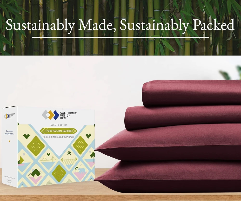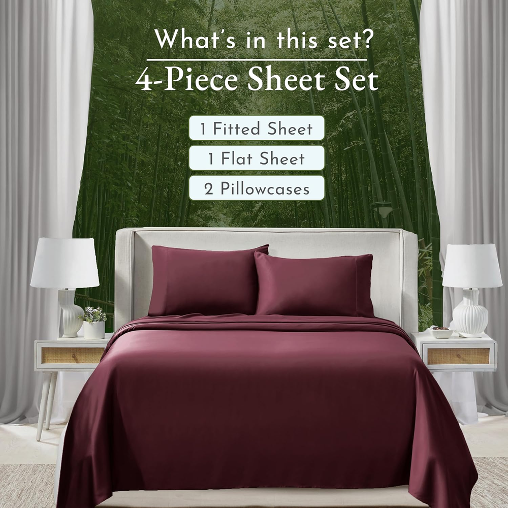 Store New Arrivals Add to Favorite View Feedback Contact Rayon from Bamboo Sheets Cal King Sheet Set, Luxury Cooling Sheets, Burgundy Sheets for California King Size Bed with Deep Pocket Fitted Sheet (Cal King, Burgundy) Product Information Item model number B0D2KZWZS1 Style Modern Pillowcase Width 37 Inches Weave Type Sateen Pattern Solid Theme Luxury Number of Pieces 4 Unit Count 1.0 Count Sham Quantity 2 Pillowcase Quantity 2 Material Rayon from Bamboo Item Display Dimensions 11.2 x 9.2 x 5 inches Seasons All, Winter, Summer, Fall Included Components 1 Flat Sheet, 1 Fitted Sheet & 2 Pillowcases Closure Type Pull-On Item dimensions L x W x H 11.2 x 9.2 x 5 inches Item Weight 2.27 pounds Pillowcase Length 37 Inches Fitted Sheet Pocket Depth 16 Inches Special Feature No-Shrink, No-Fade, All-Around Elastic, Soft Silky Sateen, Cooling, Deep Pocket, Head/Foot Side Indicator Tags Color Burgundy Thread Count 300 Product Dimensions 11.2 x 9.2 x 5 inches Product Care Instructions Machine Wash, Tumble Dry Size California King ABOUT US We are proud to be based in the United States, with all of our products shipping directly from within the country. Our selection includes home décor, furniture, sports equipment, tools, pet products, and more. If you have any questions about our products, we’re always happy to help. SHIPPING We are always working hard to ensure your package arrives as soon as possible. Please understand that some factors like weather, high postal traffic, and the performance of shipping companies are outside of our control. We offer free shipping to the lower 48 states and ship within 2 business days of payment, usually sooner. For shipping outside of the continental USA, we only use eBay's Global Shipping Program. The item is shipped to IL and then sent to the rest of the world. RETURNS We offer Free Returns for 30-Days on items which you are not completely satisfied with. You have the option for a full-refund or an exchange of the item. CUSTOMER SATISFACTION We try our very best to make sure every customer is completely satisfied. If there's a problem, message us! We're happy to help.