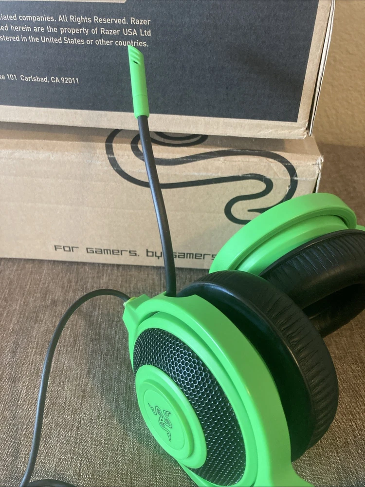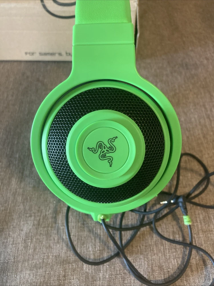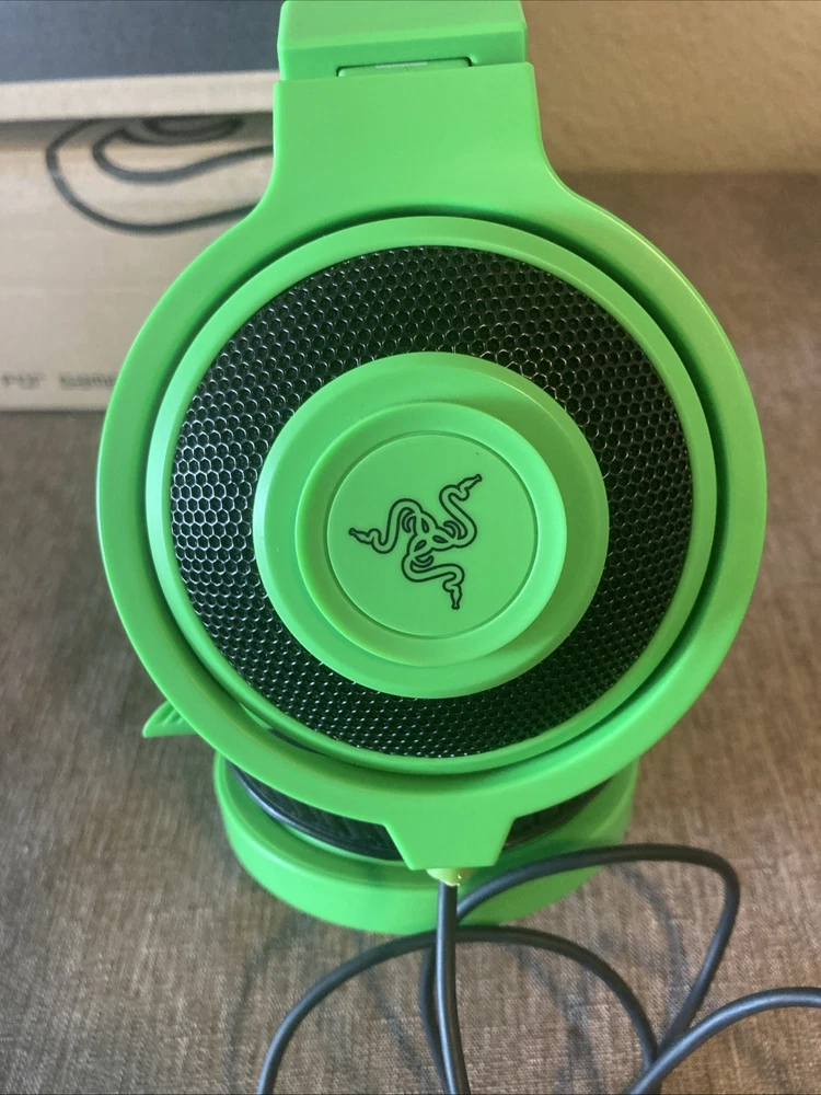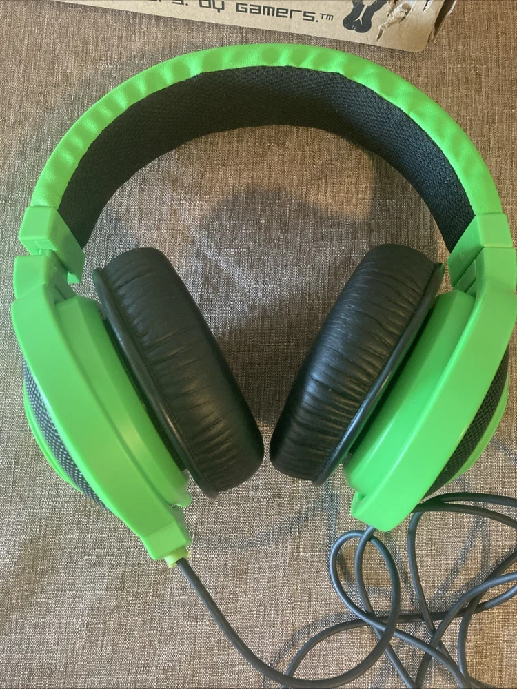 The Razer Kraken Gaming Headset in green offers a comfortable and immersive gaming experience with its over-the-ear design and noise cancellation feature. The headset includes a built-in microphone, volume control, and mute button for easy customization during gameplay. Compatible with PC, Xbox, PS4, and Nintendo Switch, this headset provides a wired connection for stable audio transmission. With its sleek headband form factor and double earpieces, the Razer Kraken headset is designed specifically for gaming enthusiasts looking for high-quality sound and convenience. ***PRE - OWNED*** Some very minor cosmetic scuff marks and wear headphones an on exterior of box. Overall in great working condition! ( SEE PICS ) VOLUME DISCOUNTS APPLIED CHECK OUT OUR OTHER LISTINGS FOR SIMILAR PRODUCTS LIKE THIS !
