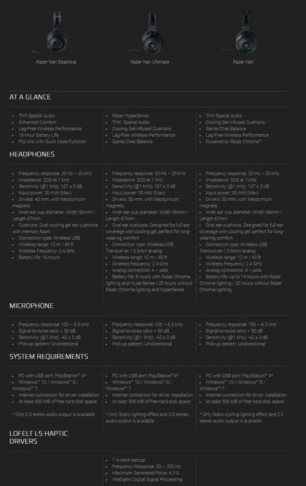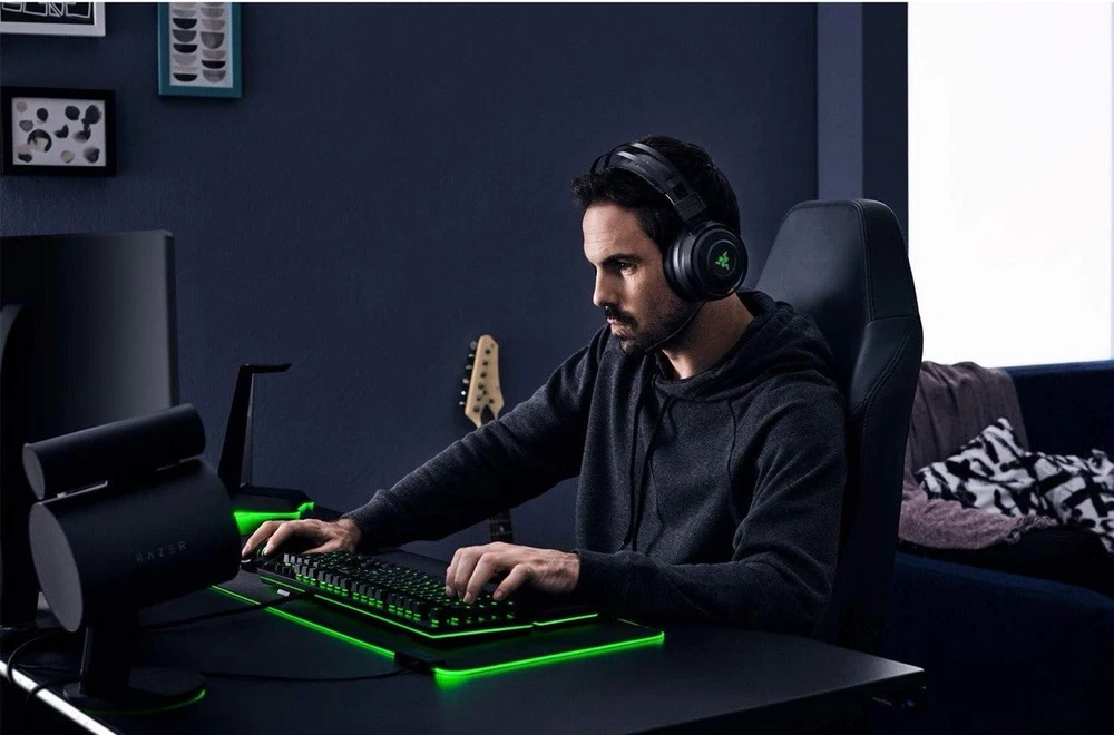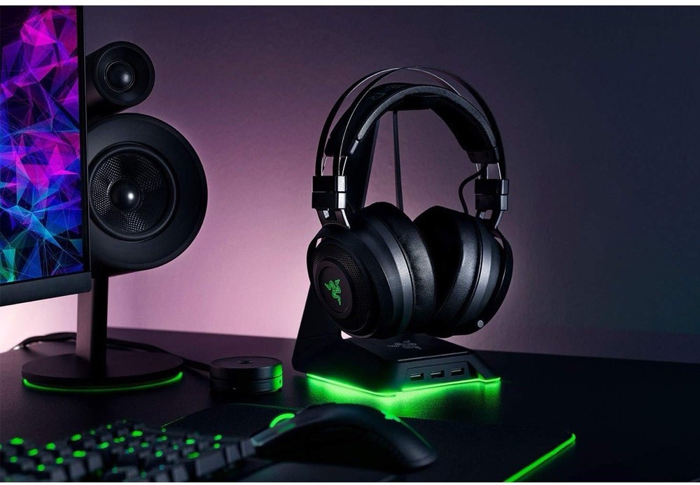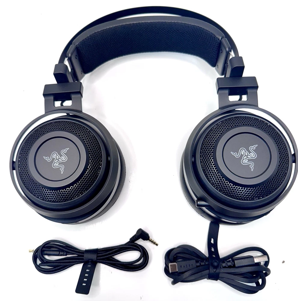 USED VERY GOOD CONDITION. 30 days return and 90 days warranty. Minor scuffs and or paint chips like shown on pictures. Please see pictures for examples of condition. Comes with all accessories shown in pictures. Returns must be in original condition. Please ask if you have any questions. Thank you Description The Razer Nari is designed for gamers who seek core features, superior comfort, and incredible sound in a wireless gaming headset. An auto-adjusting headband fits the headset onto the unique shape of your head, while its aluminum body makes it lightweight to wear and provides durability. With plush leatherette ear cushions that completely cover your ears, enjoy superior sound isolation without compromising on comfort. THX Spatial Audio delivers next-generation virtual surround sound for a more powerful immersive experience. Features & details The #1 Best-Selling Gaming Peripherals Manufacturer in the US: Source - The NPD Group, Inc. U.S. Retail Tracking Service, Keyboards, Mice, PC Headset/Pc Microphone, Gaming Designed, based on dollar sales, 2017-2021 THX Spatial Audio for Full Immersion: Simulates sound in a 360° sphere to provide positional information from gunfire and enemy footsteps On-Headset Audio Controls: Volume adjustment wheel and mic mute button directly on the headset for convenience 16-Hour Battery Life for Continuous Use: Allows for extended wireless media consumption (charges via micro USB 2.0 cable) Noise Cancelling Microphone for Clear In-Game Chat: The outward-flipping microphone extends when needed and collapses when it's not, all while blocking out background noise 2.4GHz Wireless Connection for Lag-Free Performance: Supports a range of up to 40 ft / 12 m Ultimate Personalization & Gaming Immersion with Razer Chroma: Includes 16.8 million color combinations