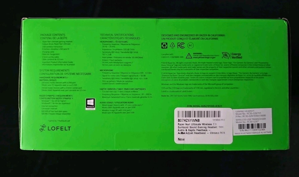 UPC: 8886419371823 Brand: Razer Features: Surround Sound, Active Noise Cancellation, Microphone Mute Button, Adjustable Headband, Volume Control, Noise Cancellation, Built-in Microphone Year Manufactured: 2020s MPN: RC30026701 GTIN: 8886419371823 Form Factor: Headband Wireless Technology: LIGHTSPEED Wireless, Bluetooth Number of Earpieces: Double Microphone Type: Built-In Color: Black Cable Length: 3ft Band: HF Connectivity: Bluetooth, USB, Proprietary, 3.5mm Jack Charger Included: No Type: Ear-Cup (Over the Ear) gtin13: 8886419371823
