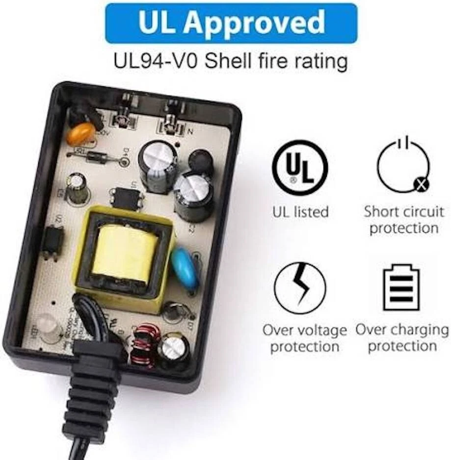 This charger has an output of 24 volts and 600mA and is suitable for charging electric scooters. Qili Brand, Power Class 2 power supply charger designed for Razor electric scooters. It is black. Model number of QL-09002B-B2400600H. UL Listed Class 2 Power Unit UL APPROVED Short circuit and over voltage protection. This charger is certified to UL standard: UL 1310.