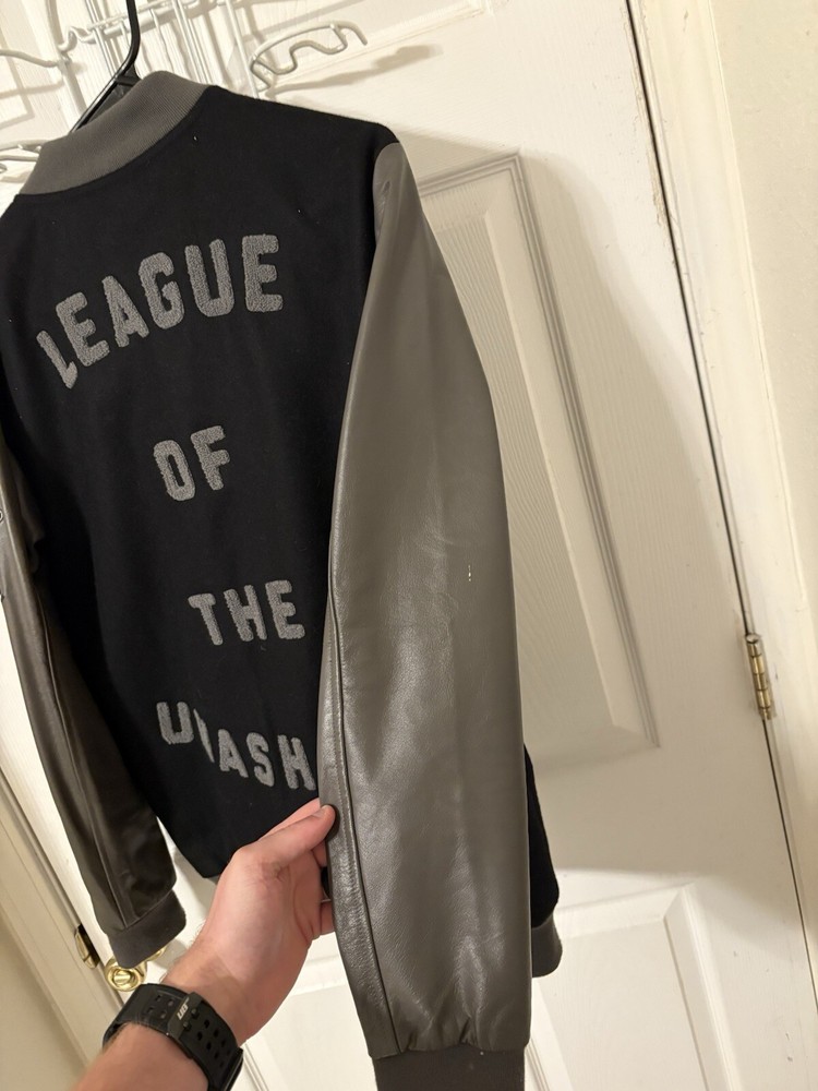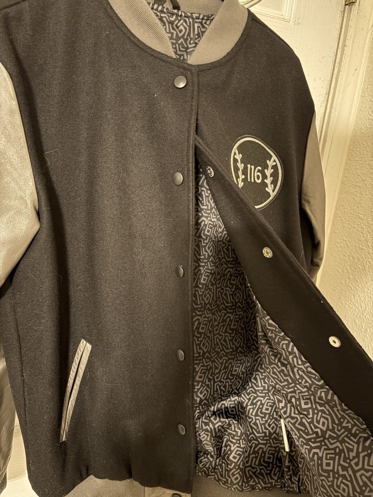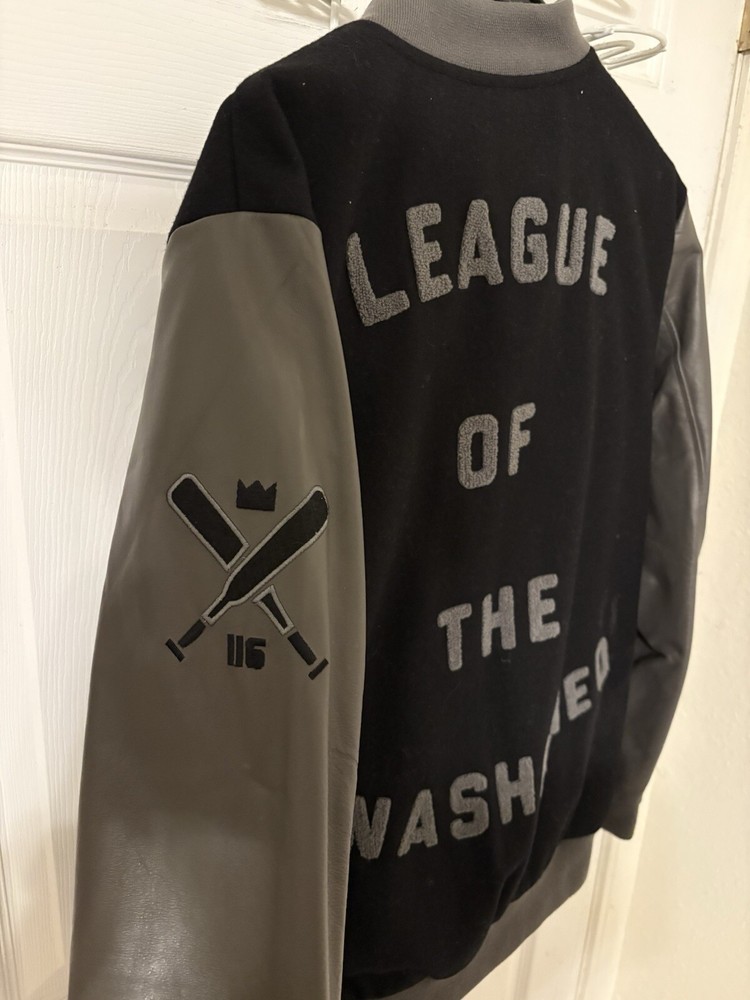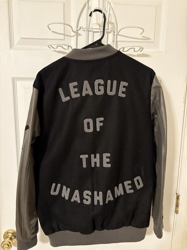 Reach Records 116 “League Of The Unashamed” Jacket. Limited edition from a Reach Records collection back in 2017. Leather sleeved jacket with a wool and fiber body. Slightly used.