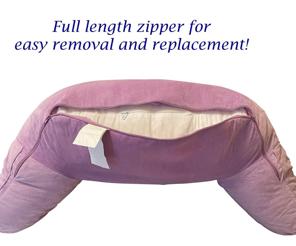 Why keep a worn and stained reading pillow cover? Why the Replacement Cover for your Reading Pillow is superior to similar products: - When you need a fresh look for your reading pillow, we have the perfect replacement, a soft velour cover for your reading pillow. - The replacement cover is stain-resistant and can be easily spot cleaned with a damp cloth for quick cleanup of spills and stains. However, if you need a good cleaning, the cover is removable and washable. The full zipper along the bottom makes it easy to remove and replace. - The velour outer cover has pockets on each arm for easy access to your phone or remote, and still has the same softness and quality as the original. - The replacement cover has a convenient carry handle that is securely attached for portability. Carry your pillow to any room you want to use it in. Add one to your cart today, and consider picking up another as a gift for a friend! REPLACEMENT COVER FOR READING PILLOW - when you need a fresh look for your reading pillow, we have the perfect replacement, a soft, grey velour cover for your reading pillow. PILLOW NOT INCLUDED. STAIN RESISTANT, REMOVABLE AND MACHINE WASHABLE - the cover is stain-resistant and can be easily spot cleaned with a damp cloth for quick cleanup of spills and stains. However, if you need a good cleaning, the cover is removable and washable. The full zipper along the bottom makes it easy to remove and replace. BONUS CONVENIENT POCKETS - the velour outer cover has pockets on each arm for easy access to your phone or remote, and still has the same softness and quality as the original. PORTABLE - The replacement cover has a convenient carry handle that is securely attached for portability. Carry your pillow to any room you want to use it in. SOFT AND LUXURIOUS - pillows feature a warm breathable velour cover that is soft and luxurious to the touch. Now you can have this quality cover for your other pillows to rejuvenate them or just change your décor. Add one to your cart today.