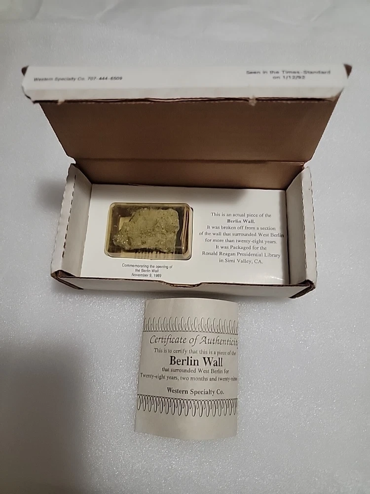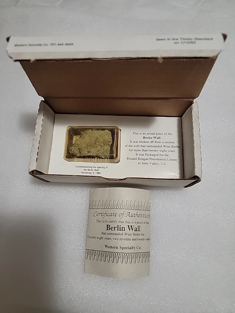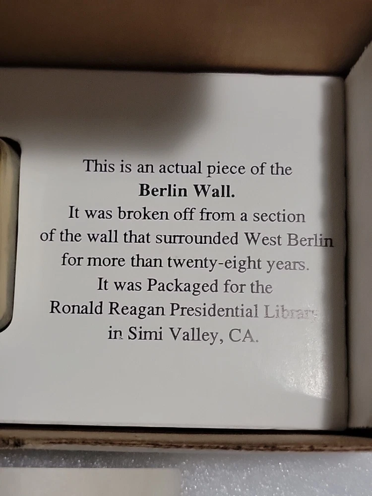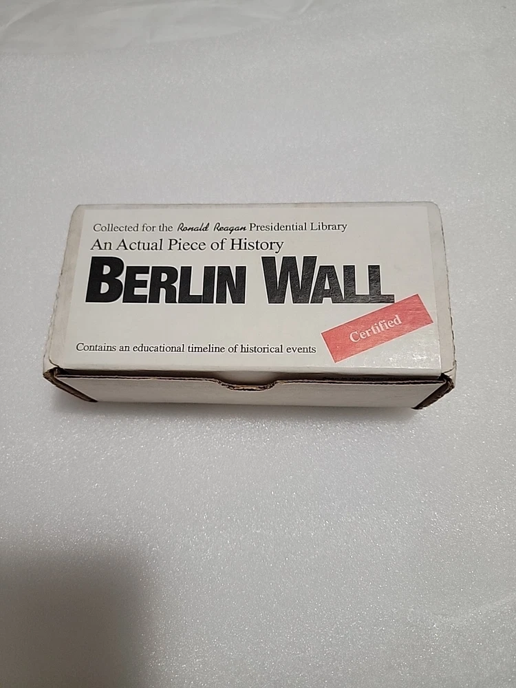 "Reagan" Berlin Wall Piece Certified For Reagan Presidential Library "Tear Down". Condition is Used. Shipped with USPS Ground Advantage. Yb3
